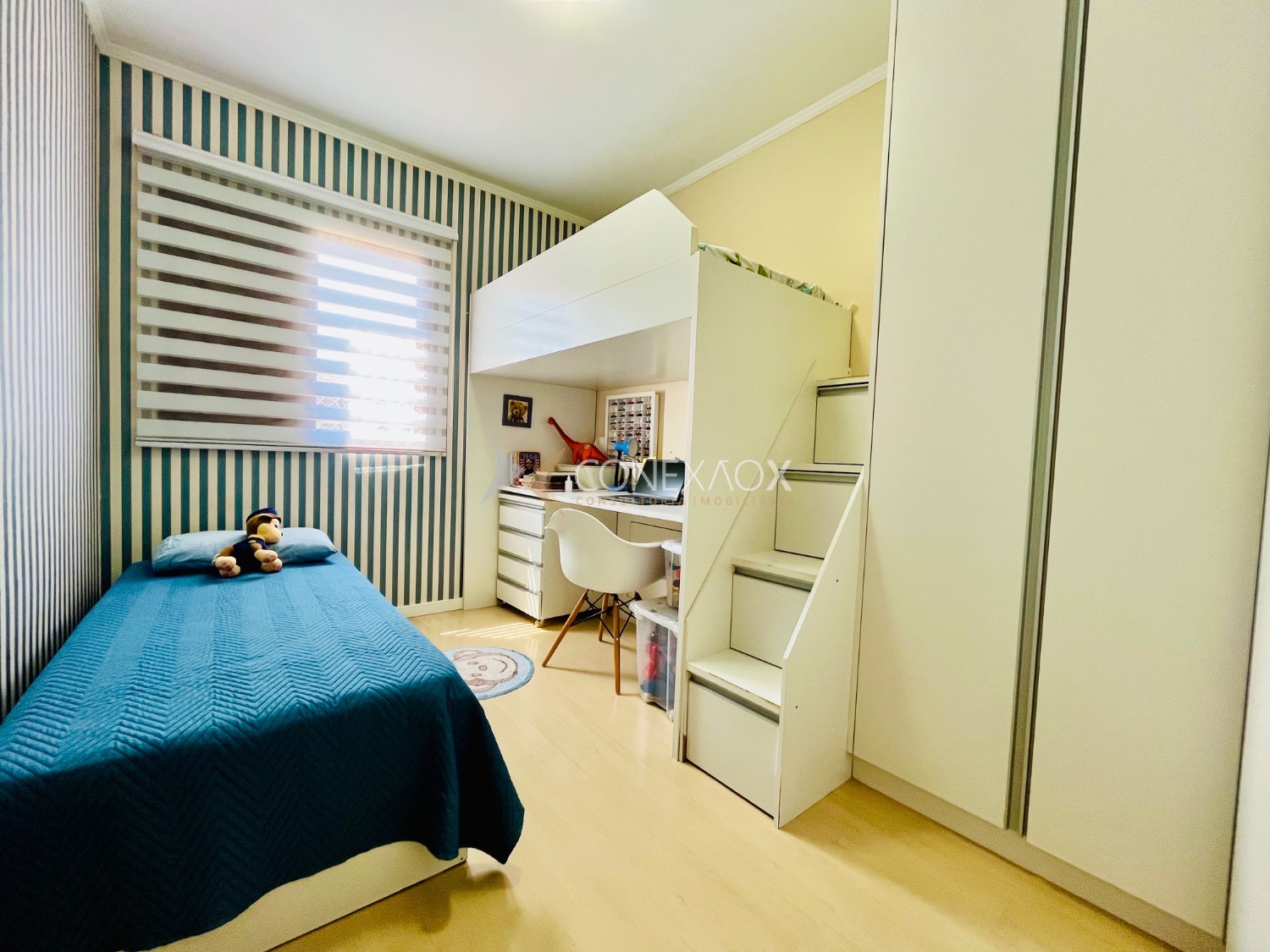 2 quartos com muitos armários, cozinha planejada, recentemente reformada e área de serviço, 1 banheiro completo, 1 garagem muito bem localizada.