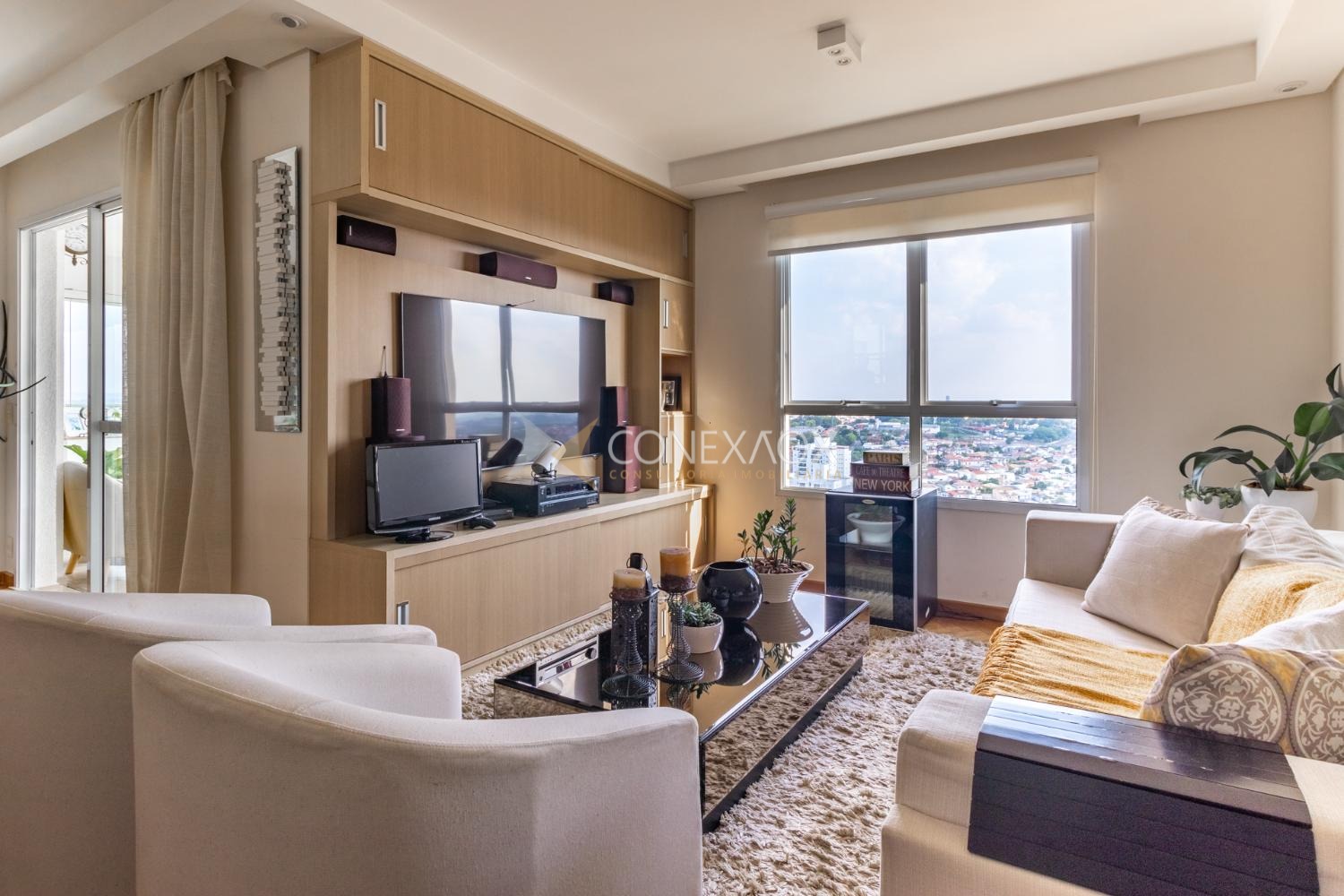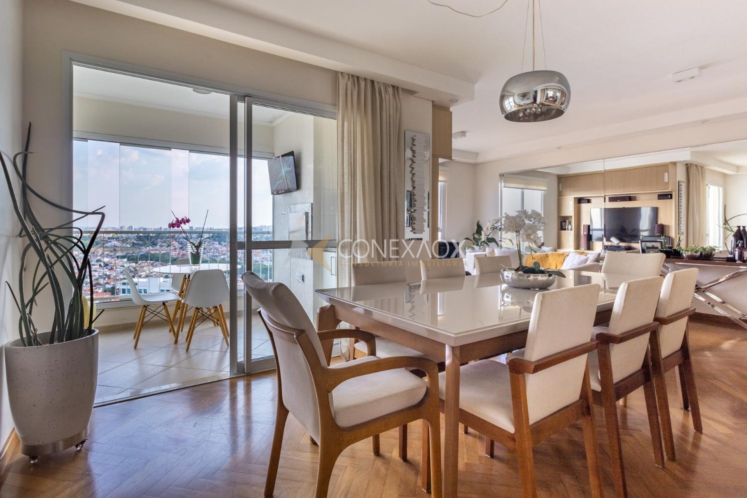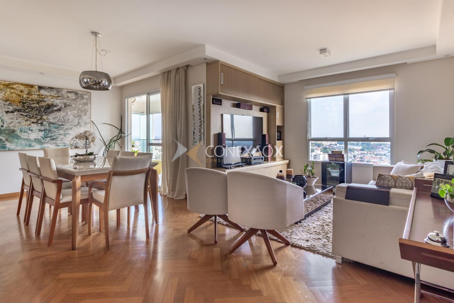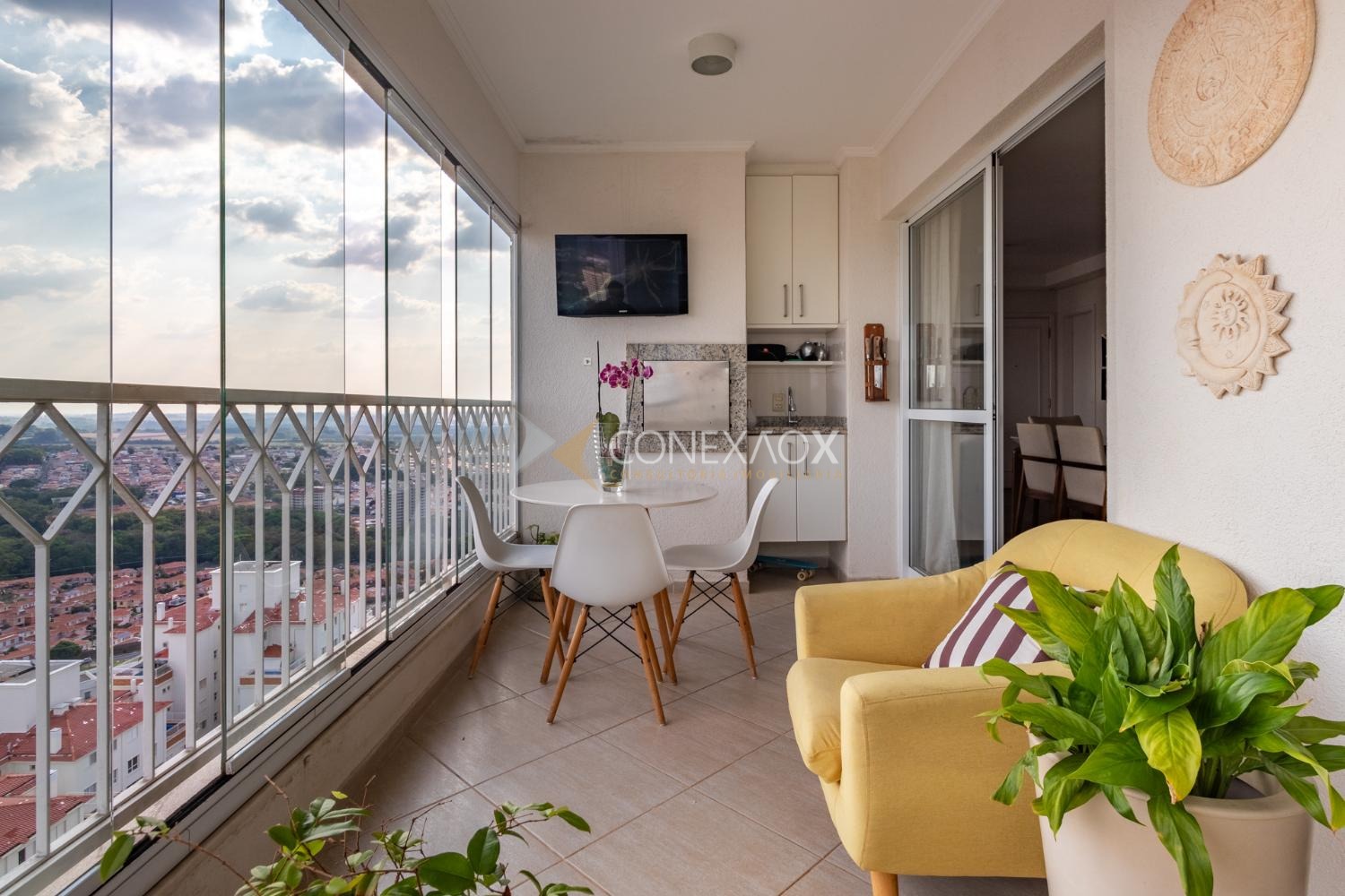 Apartamento à venda no Mansões Santo Antônio com 3 quartos (3 suítes) e 3 garagens, completo. Em andar alto, uma suíte com closet, todos com armários, sala de tv ou escritório. Ampla sala para três ambientes com varanda gourmet e cozinha planejada. Muito lazer e tranquilidade. Ao lado do Shopping Dom Pedro, próximo à Pucc e Unicamp. Diferenciado com áreas verdes e de convivência.