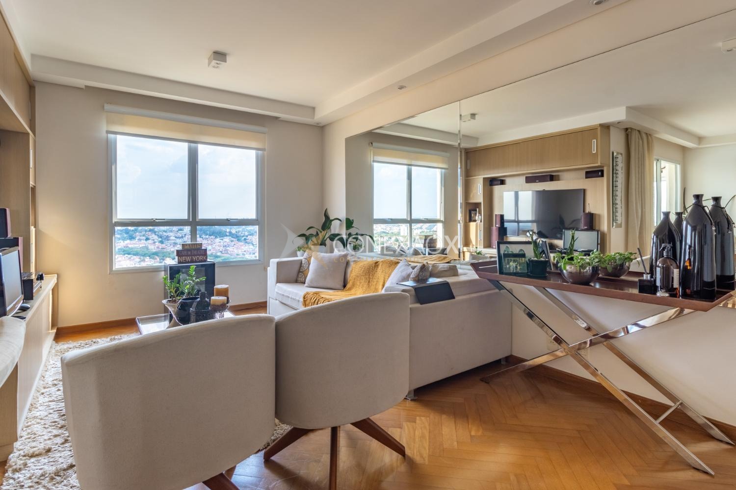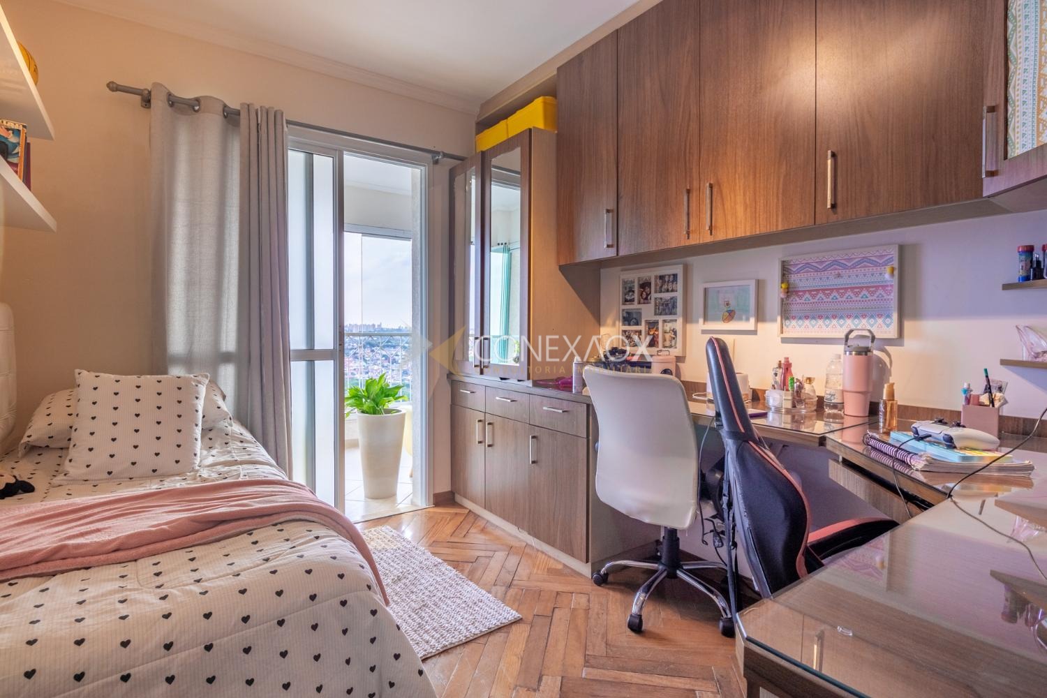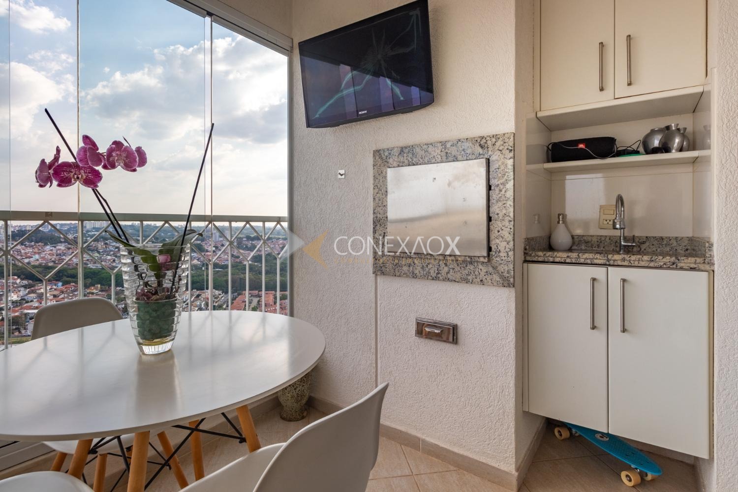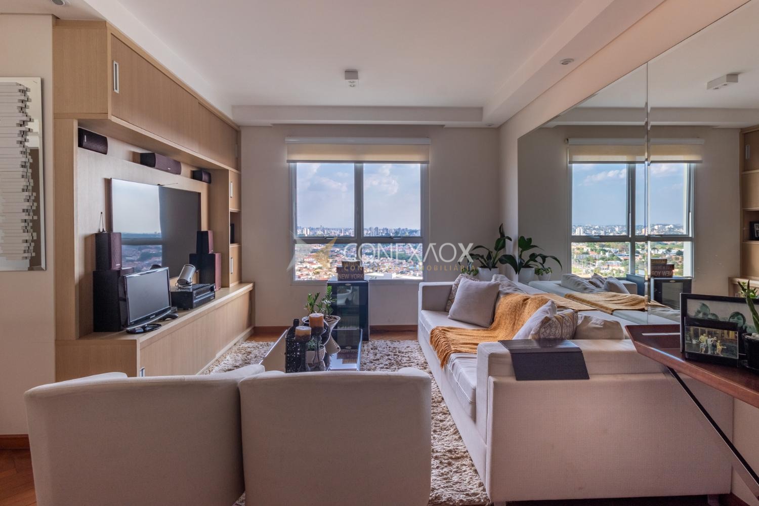 Apartamento à venda no Mansões Santo Antônio com 3 quartos (3 suítes) e 3 garagens, completo. Em andar alto, uma suíte com closet, todos com armários, sala de tv ou escritório. Ampla sala para três ambientes com varanda gourmet e cozinha planejada. Muito lazer e tranquilidade. Ao lado do Shopping Dom Pedro, próximo à Pucc e Unicamp. Diferenciado com áreas verdes e de convivência.