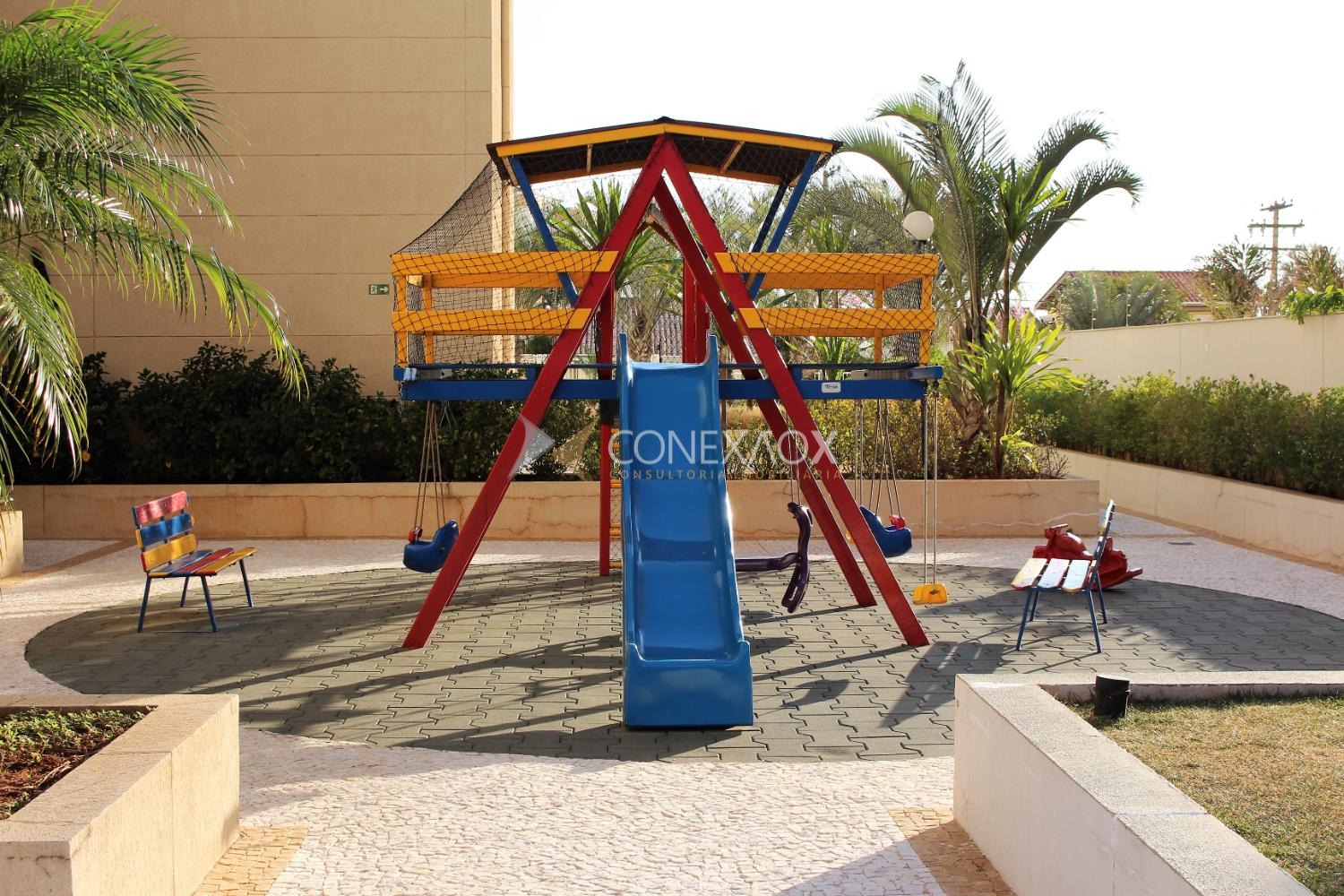 O condomínio oferece lazer completo, com academia, piscina, ofurô, quadra poliesportiva, salão de festas, playground, brinquedoteca e portaria 24 horas.