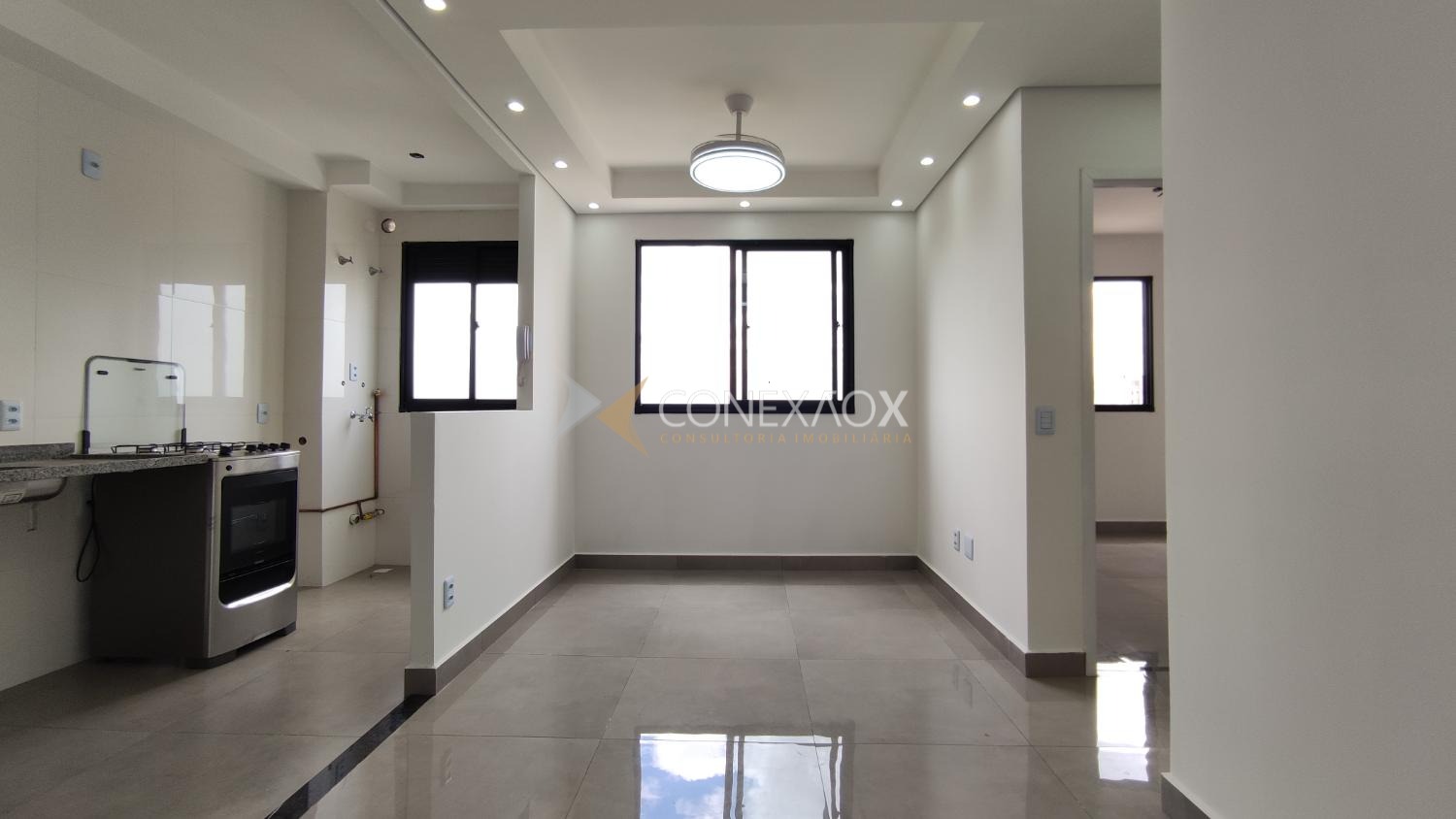 São 2 dormitórios com 1 ponto de ar condicionado no principal, sala 2 ambientes, cozinha integrada a área de serviço e banheiro social com box blindex.