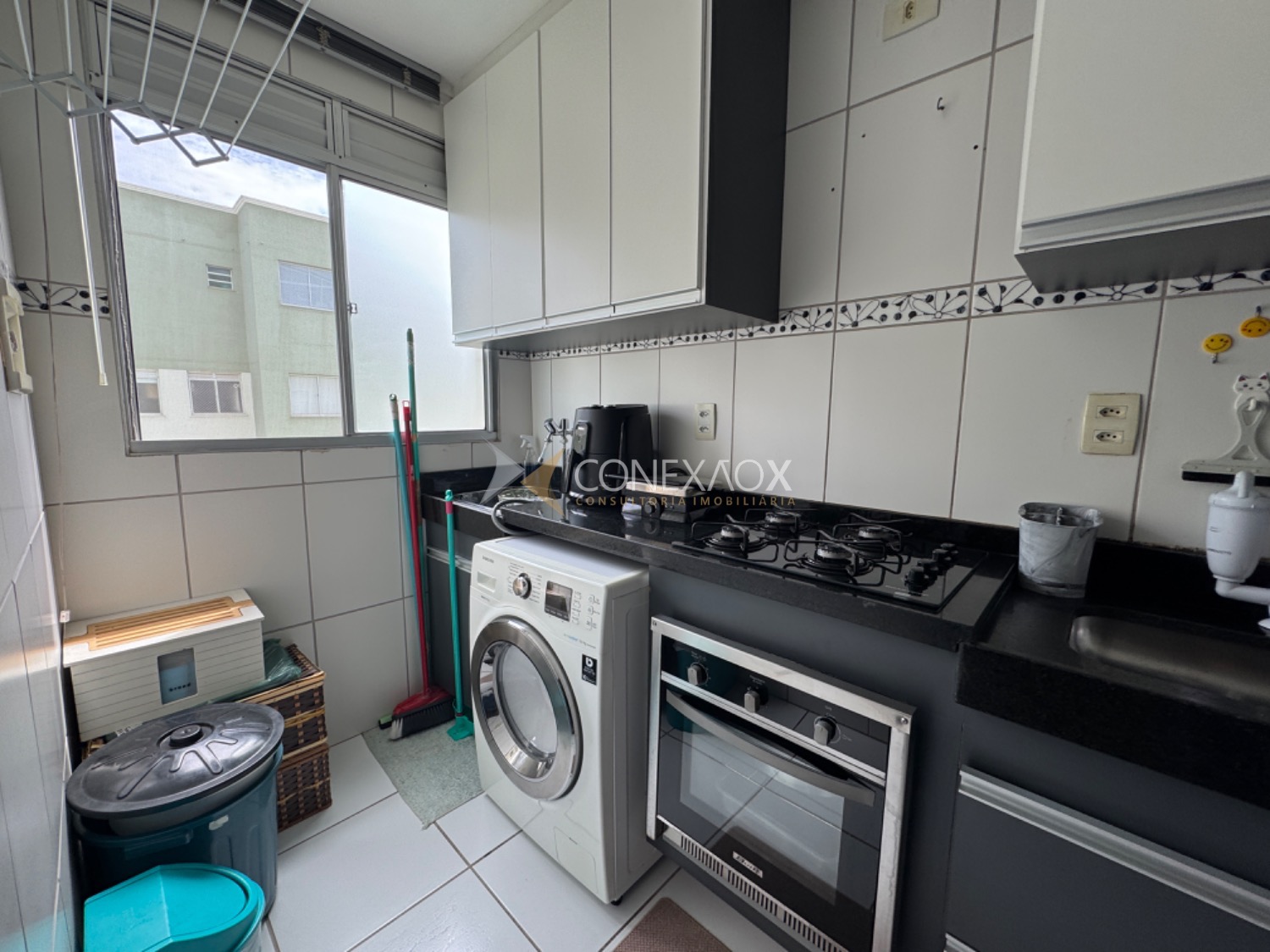 Rico em armários planejados, possuí living para 02 ambientes, cozinha americana equipada com forno e cooktop, lavanderia, 02 dormitórios, 01 banheiro e 01 vaga de garagem coberta.