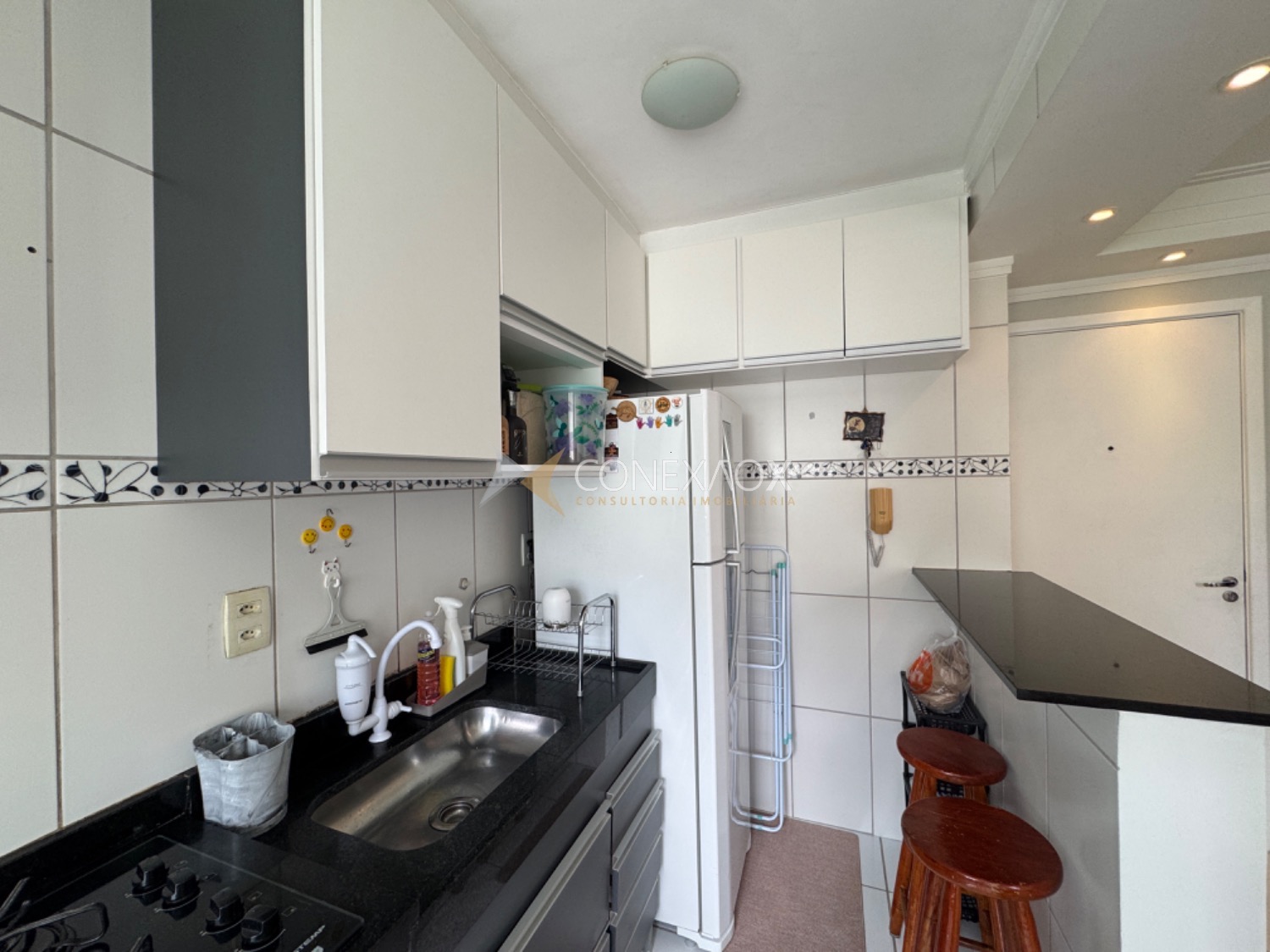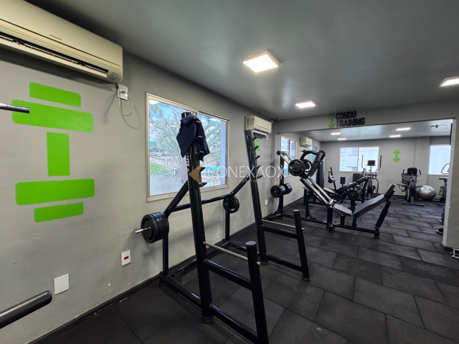 O condomínio oferece lazer completo com salão de festas, churrasqueira, quadra poliesportiva, playground, academia, mini-mercado e portaria 24hs.