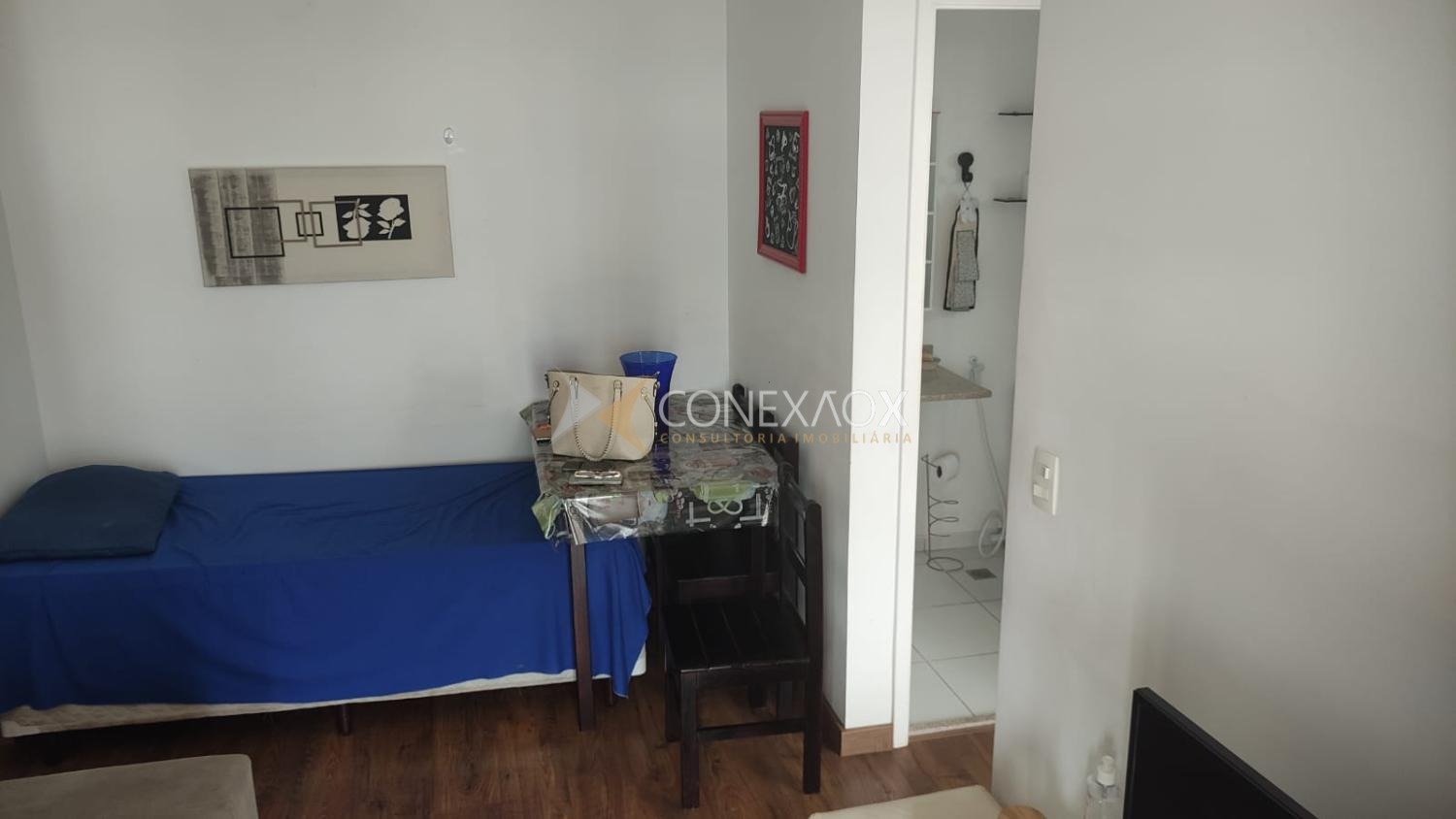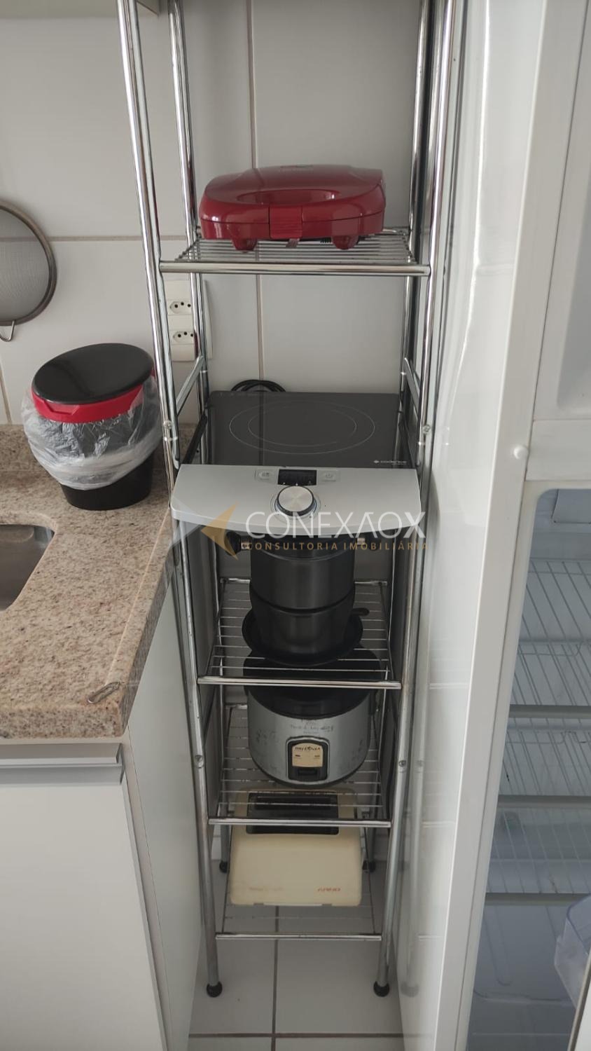 O imóvel conta com 1 dormitório, sala para dois ambientes integrada à varanda, cozinha planejada e totalmente equipada com eletrodomésticos e utensílios, banheiro social e área de serviço.