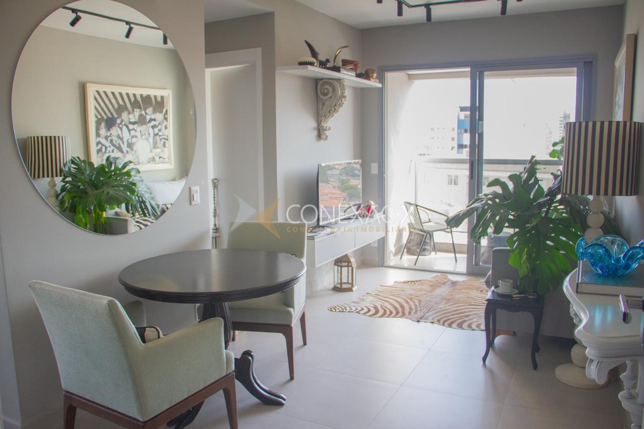 Apartamento de 58 m², com 2 dormitórios (1 suíte), totalmente decorado e com armários planejados. Sala de estar e jantar integradas à varanda, banheiro social, cozinha, lavanderia e 1 vaga de garagem.