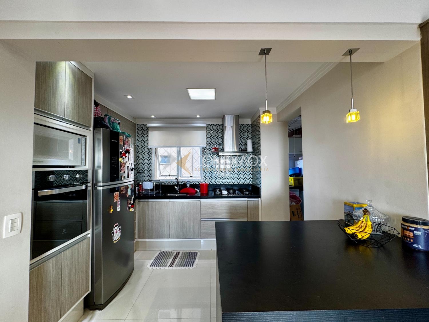 • Living para 02 ambientes, integrado à cozinha americana planejada