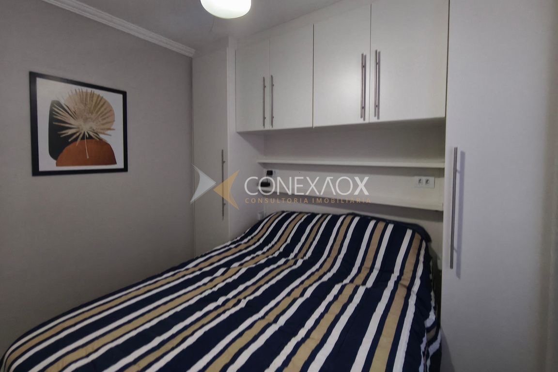 O imóvel possui 2 quartos, sendo um deles com armário planejado, cozinha com armários planejados, sala aconchegante e banheiro com gabinete e box em blindex.