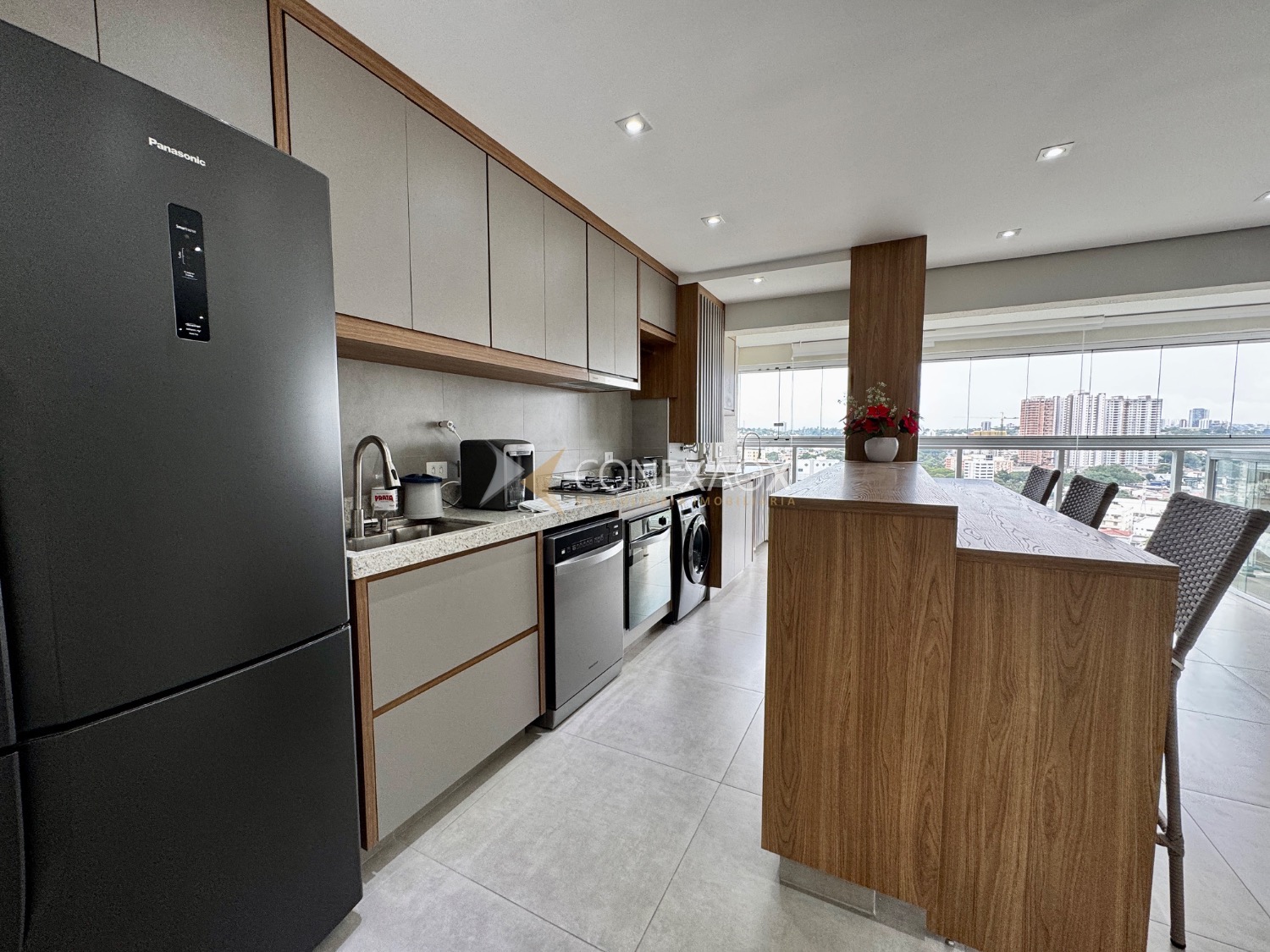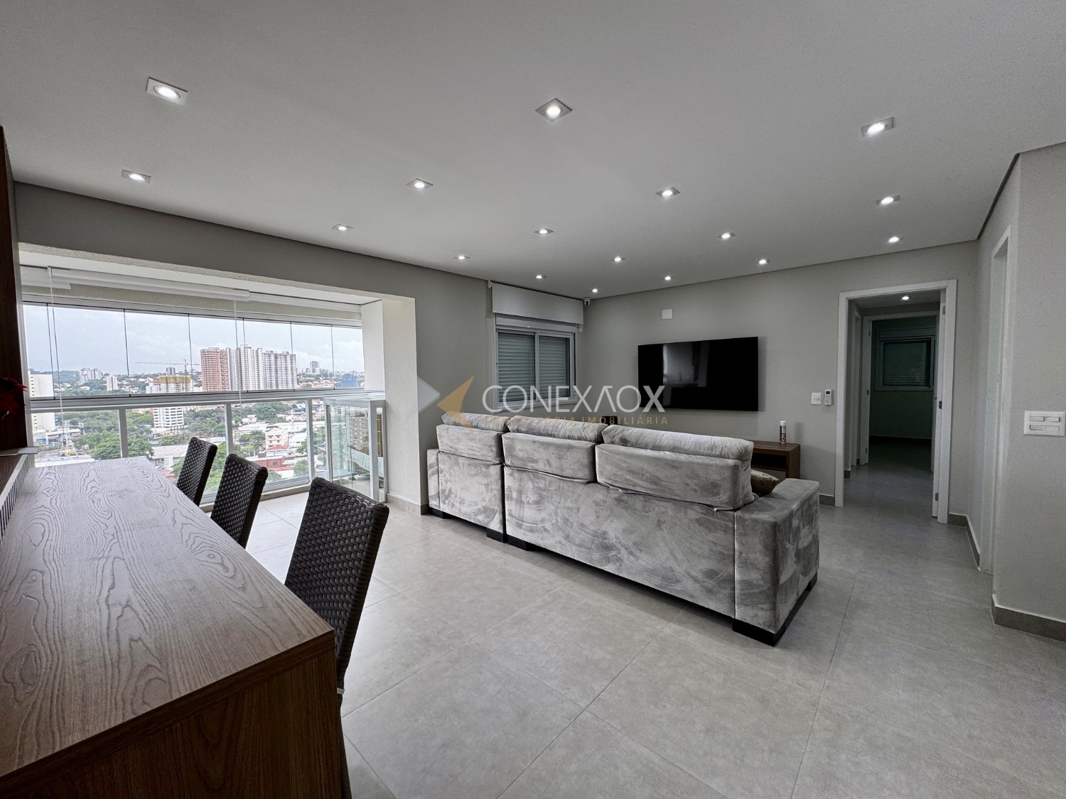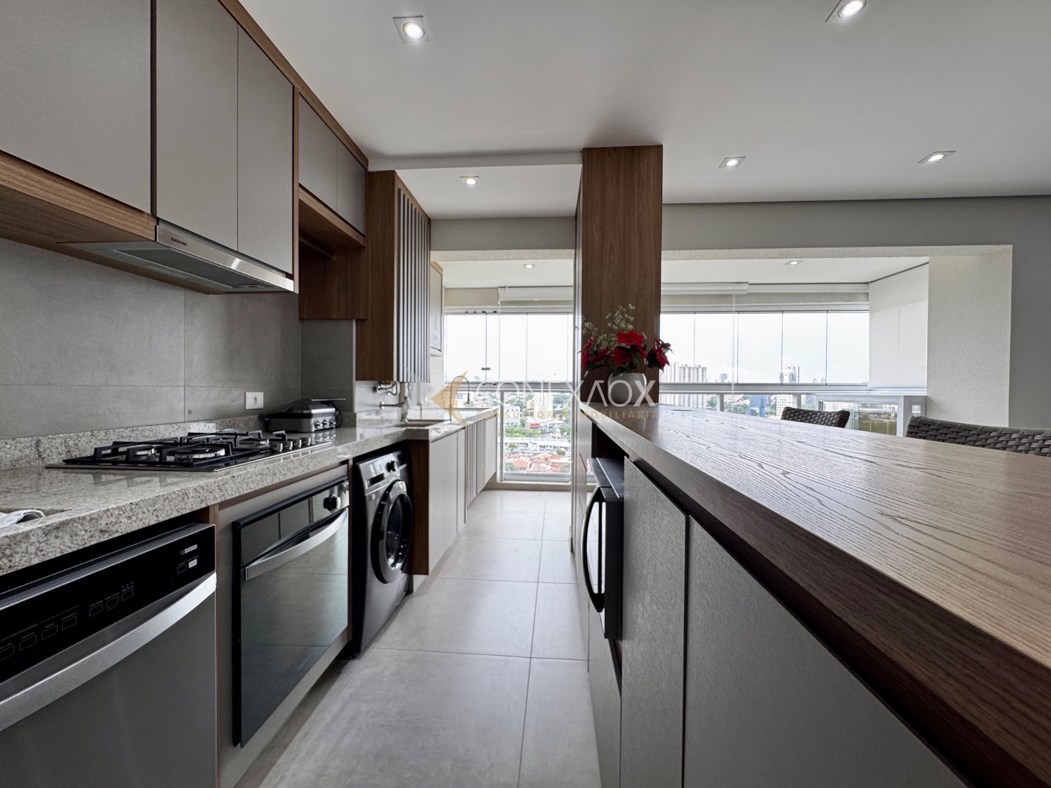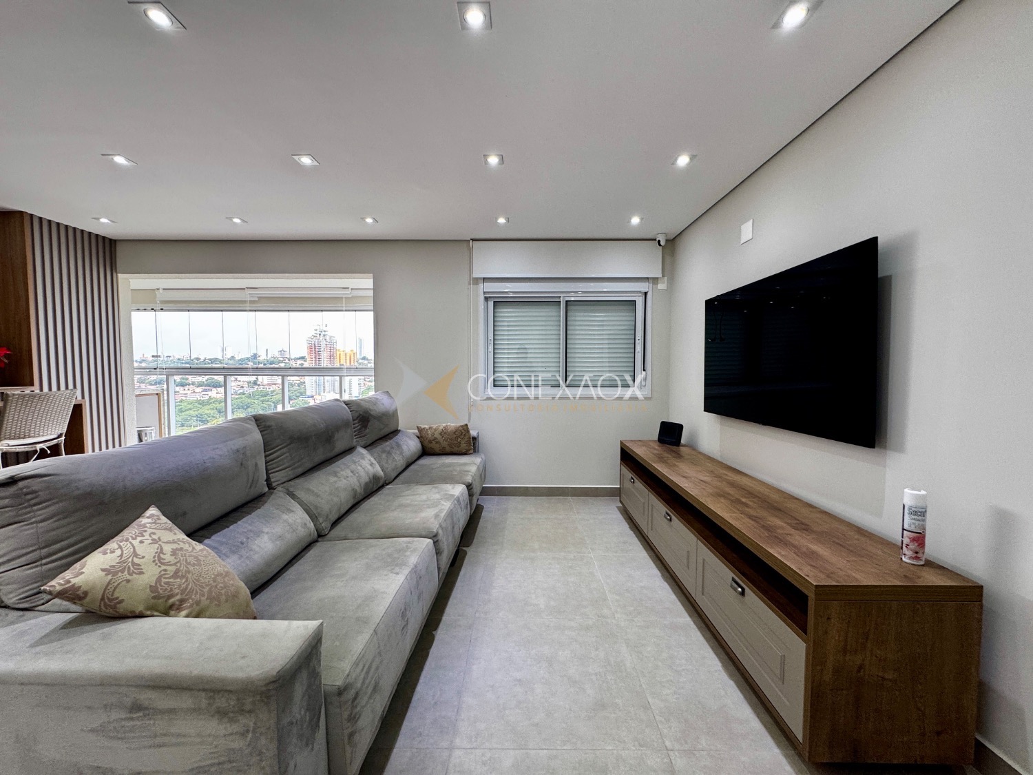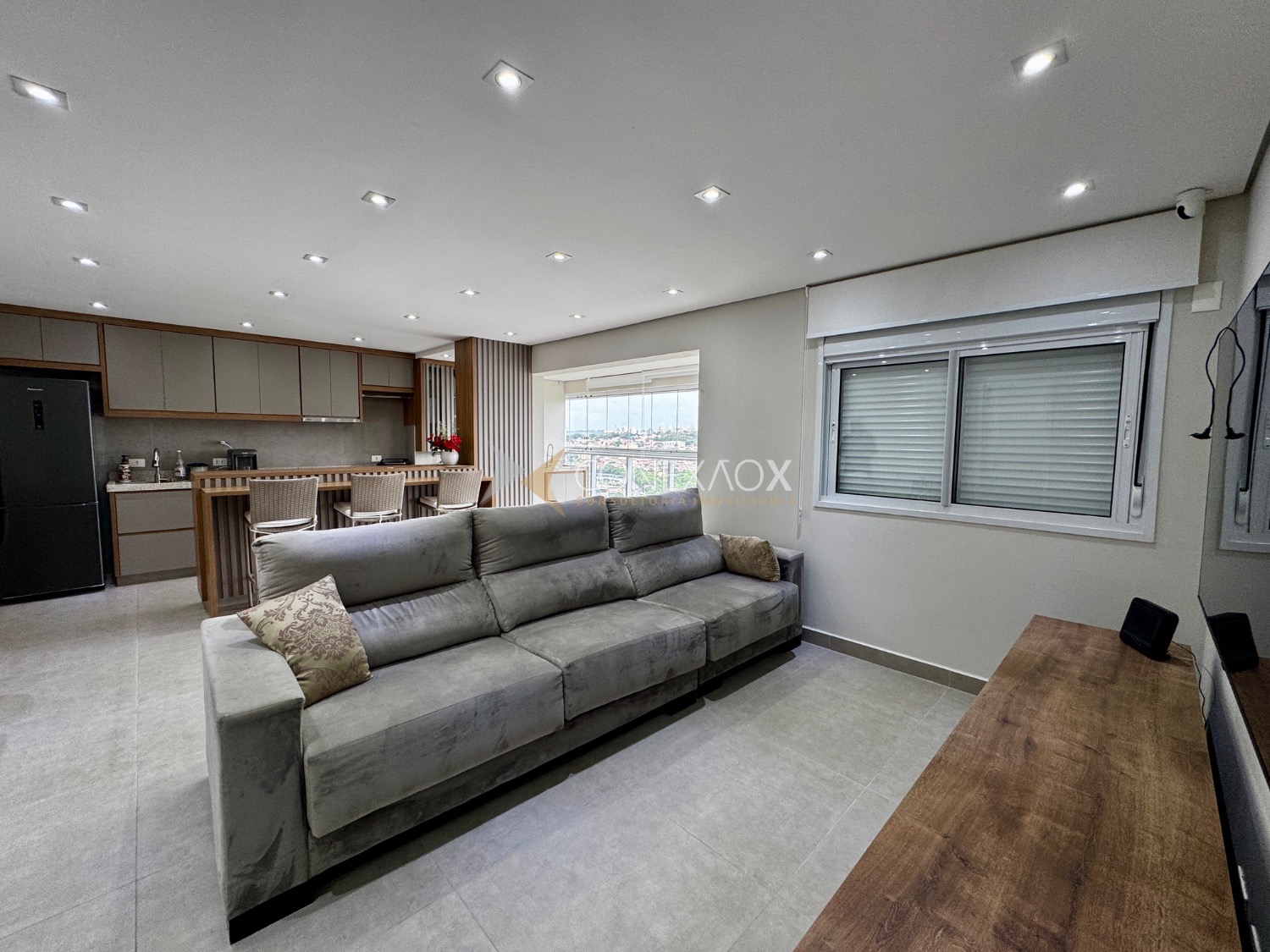 o imóvel conta com 3 dormitórios, sendo que um deles foi integrado à sala estendida, proporcionando um ambiente mais amplo e confortável. A varanda gourmet, já fechada em blindex,