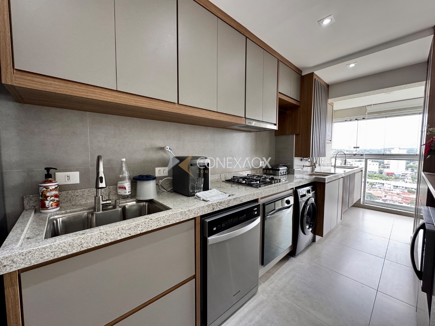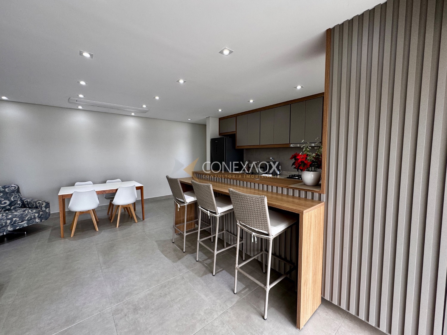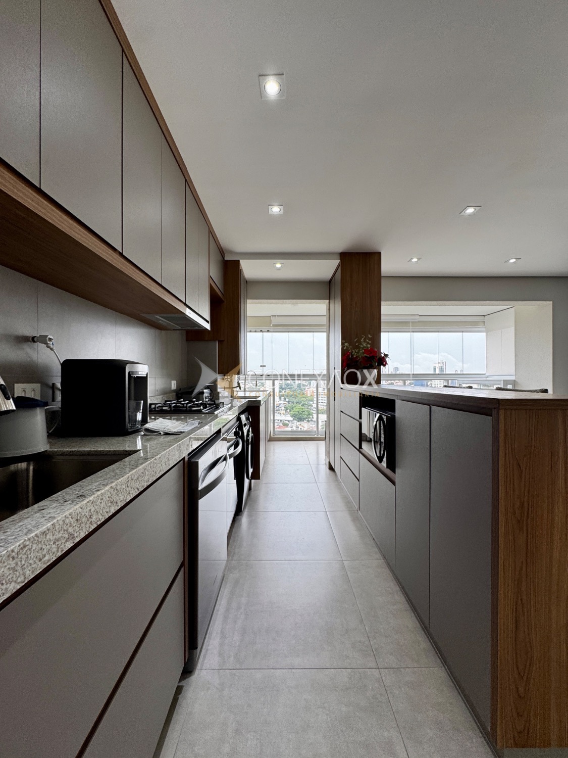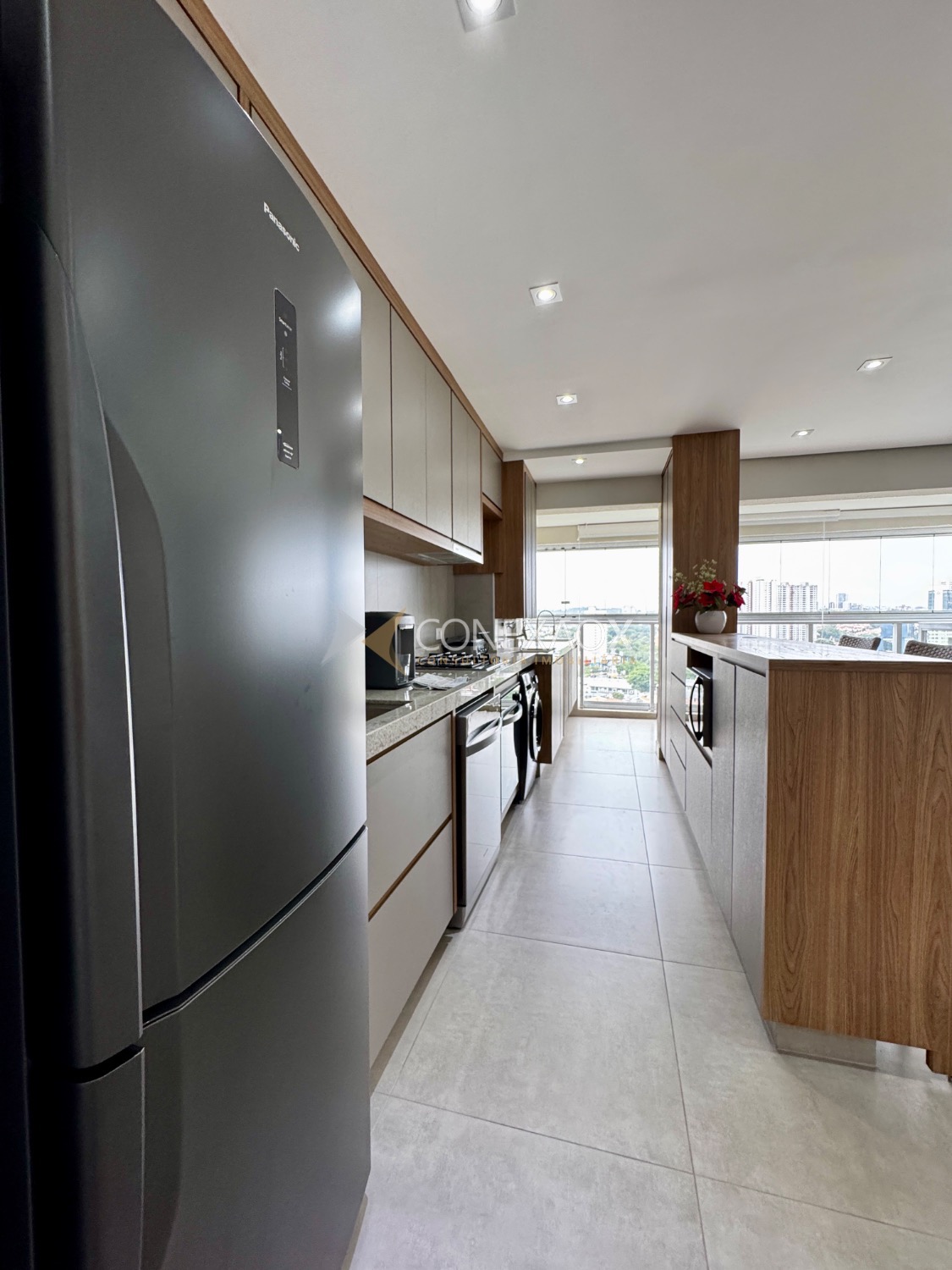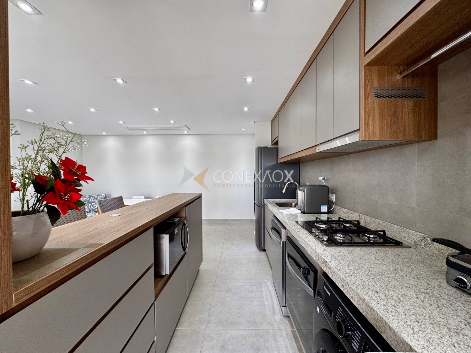 o imóvel conta com 3 dormitórios, sendo que um deles foi integrado à sala estendida, proporcionando um ambiente mais amplo e confortável. A varanda gourmet, já fechada em blindex,