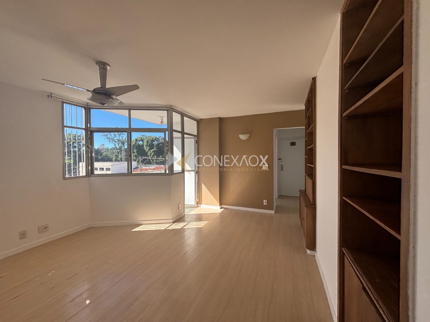 Amplo living para 2 ambientes com sacada, piso laminado, estantes embutidas, ventilador de teto, vista para o Bosque dos Jequitibás, quarto rico em armários e com ar condicionado, banheiro social, cozinha planejada, área de serviço também com vista para o Bosque, garagem. Exclente localização, ao lado do Bosque dos Jequitibás, fácil acesso para Viracopos e Anhanguera a partir da Aquidabã.