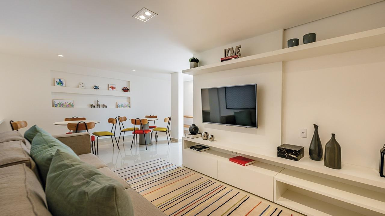 São 74 m² muito bem distribuídos, com 3 dormitórios (sendo 1 suíte), todos com armários planejados. Cozinha funcional e planejada, dormitório equipado com ar-condicionado, além de uma sala aconchegante com estilo intimista, sanca em gesso e iluminação suave, criando um ambiente moderno e acolhedor.