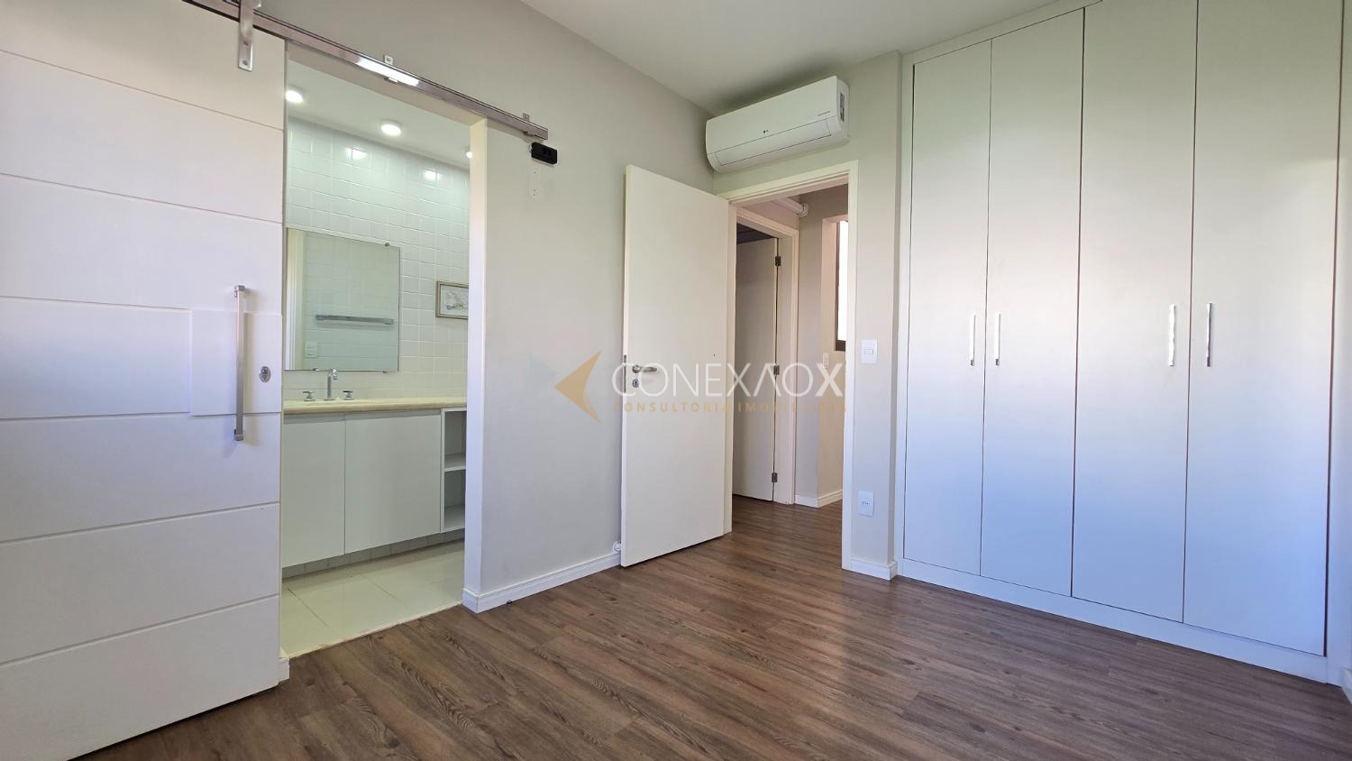 Ambientes climatizados com ar-condicionado nas salas e dormitórios. Cozinha funcional com sala de almoço, armários planejados, cooktop, coifa, forno e despensa. Área de serviço espaçosa e bem ventilada, com quarto de serviço com armários e banheiro.