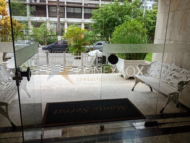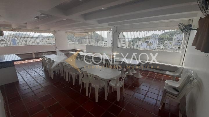 Prédio com zeladoria, serviço de praia, churrasqueira, salão de festa, elevador.