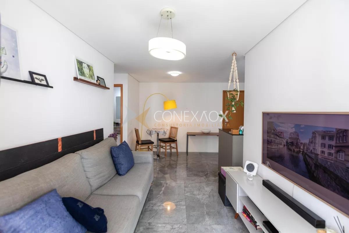 Ótimo apartamento no Condomínio Stage Concept no bairro Botafogo. Andar alto, sol da manhã, sala para 2 ambientes com cozinha aberta integrada com varanda, 2 quartos sendo uma suíte e banheiro social, 1 vaga de garagem.