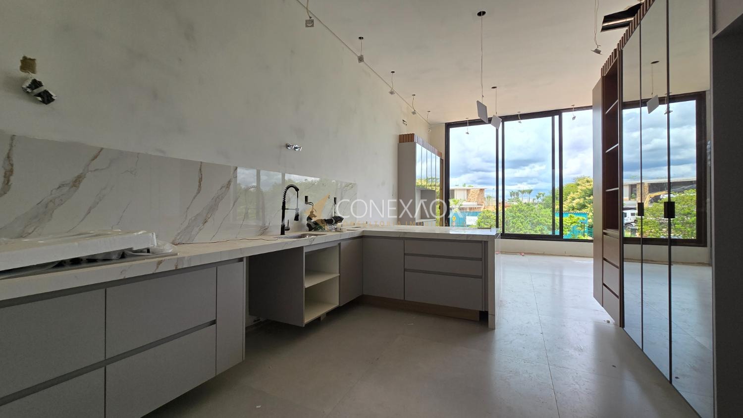 O imóvel conta com ampla sala para dois ambientes, com vista privilegiada e ótima iluminação natural, infraestrutura prevista para instalação de elevador, lavabo, escritório e cozinha americana com armários planejados, valorizando a convivência e a funcionalidade dos espaços. São 4 quartos, todos suítes com vista para a piscina; a suíte máster possui closet e dois banheiros, enquanto as demais contam com armários planejados.