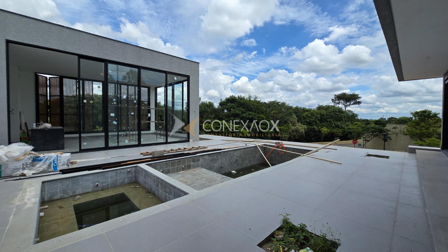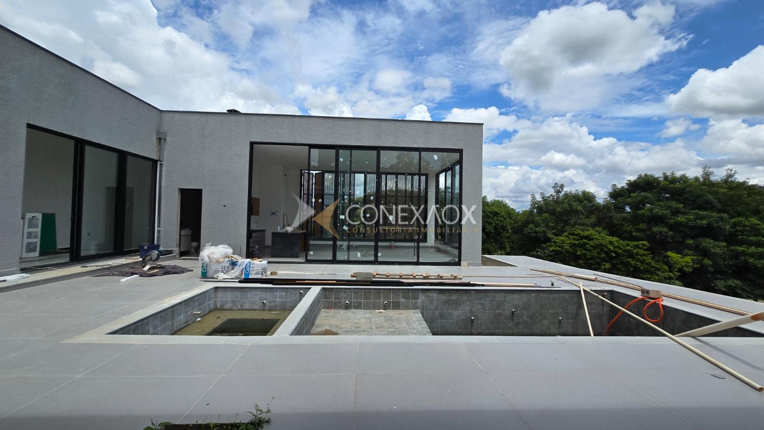 Residência moderna e sofisticada, em terreno de esquina com 1.082,82 m², 470 m² de área construída, excelente padrão construtivo e integração total entre os ambientes internos e a área de lazer.