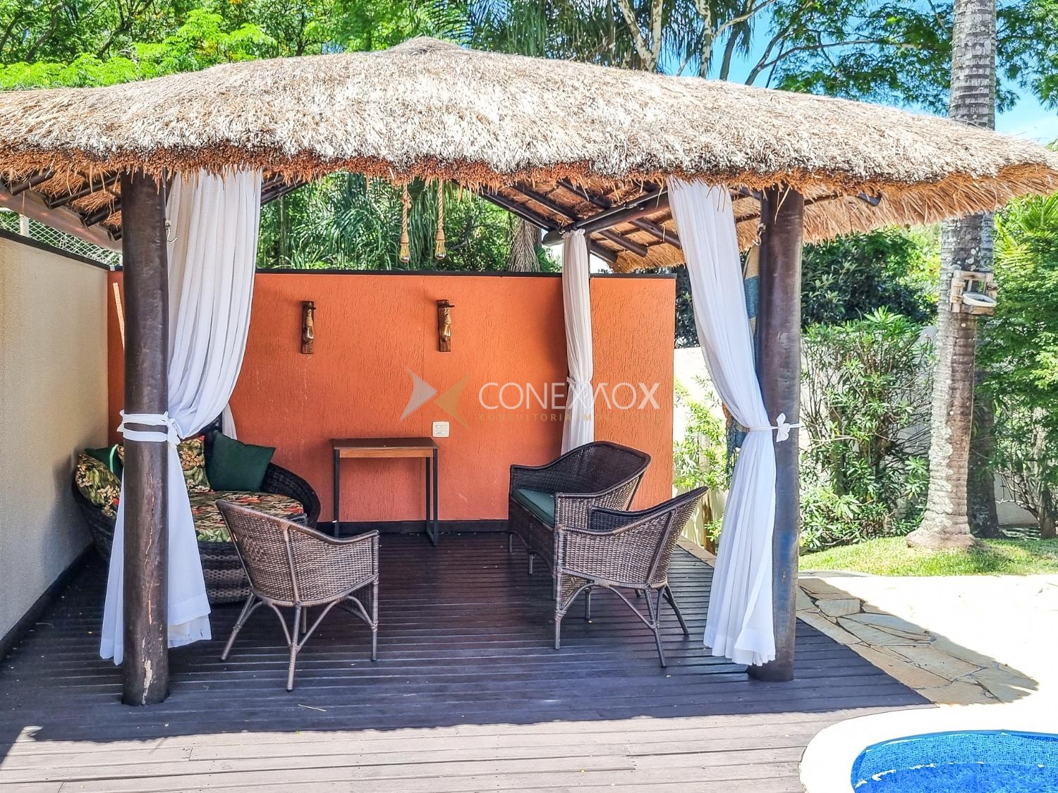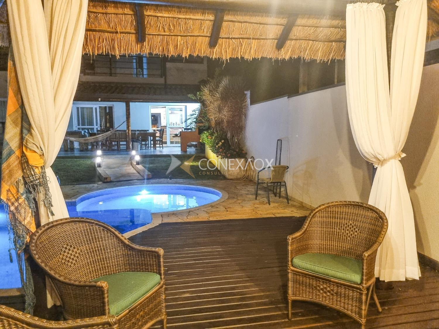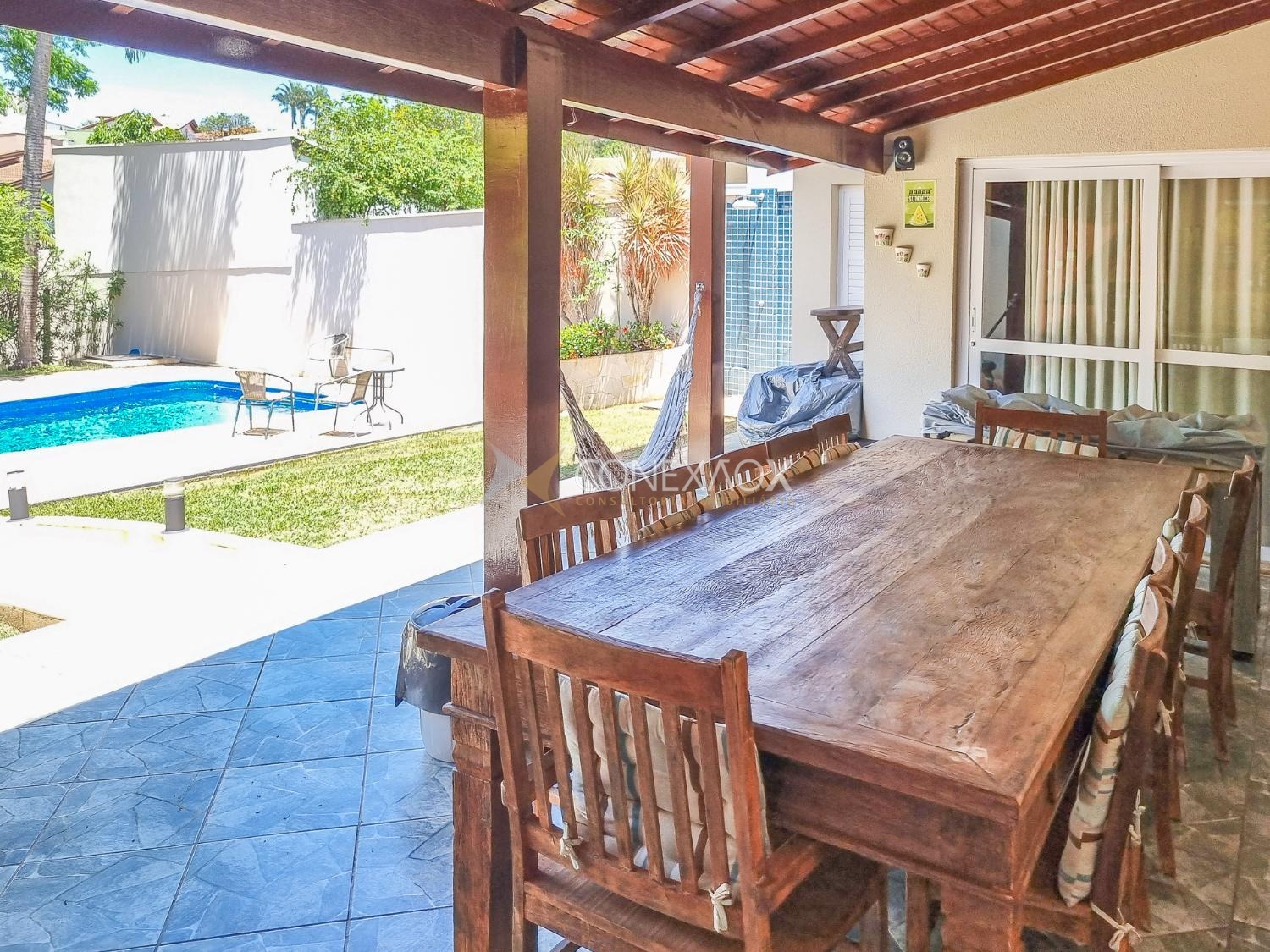 Casa para alugar no Condomínio San Conrado completa, muito confortável no meio da natureza. Os móveis não fazem parte. Uma bela casa com 4 quartos sendo duas suítes, uma com hidromassagem, as duas com closet e varanda, wc social. Térreo com sala para dois ambientes, sala de Tv, escritório, cozinha planejada, amplo quintal com espaço gourmet, piscina e quiosque. Muito verde e qualidade de vida.