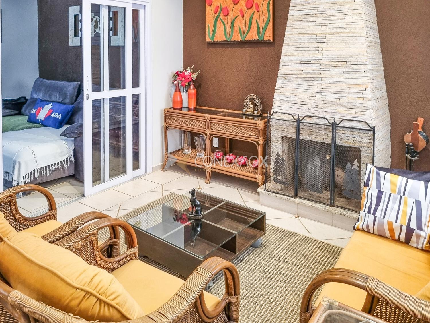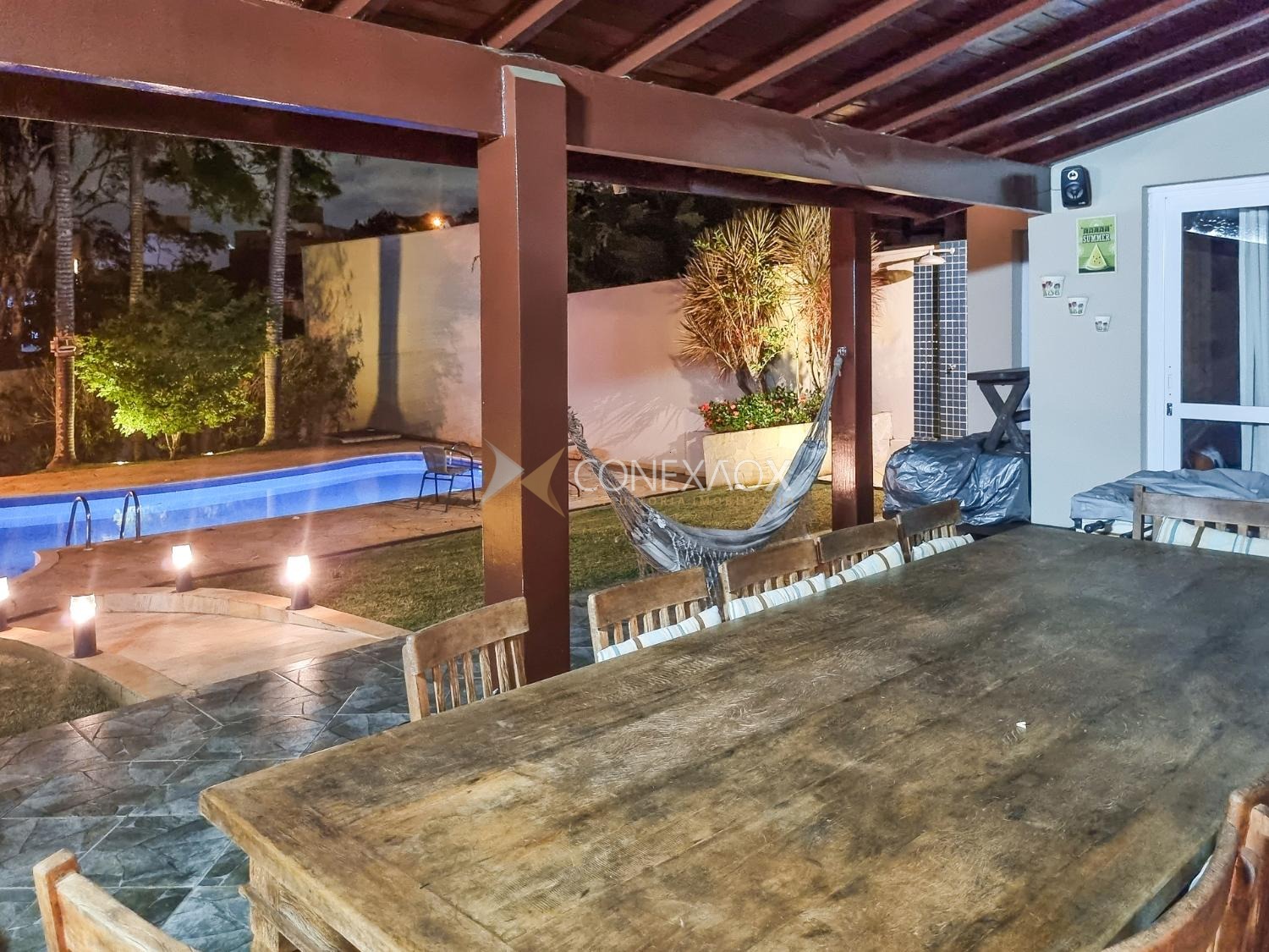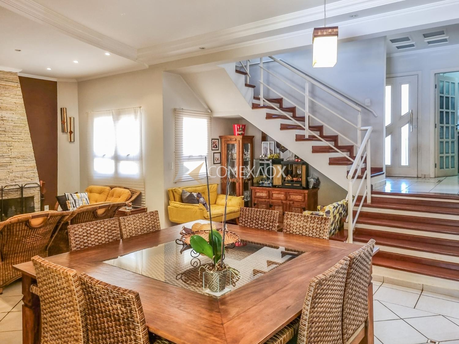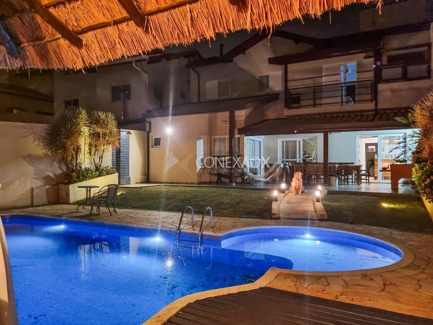 Casa para alugar no Condomínio San Conrado completa, muito confortável no meio da natureza. Os móveis não fazem parte. Uma bela casa com 4 quartos sendo duas suítes, uma com hidromassagem, as duas com closet e varanda, wc social. Térreo com sala para dois ambientes, sala de Tv, escritório, cozinha planejada, amplo quintal com espaço gourmet, piscina e quiosque. Muito verde e qualidade de vida.