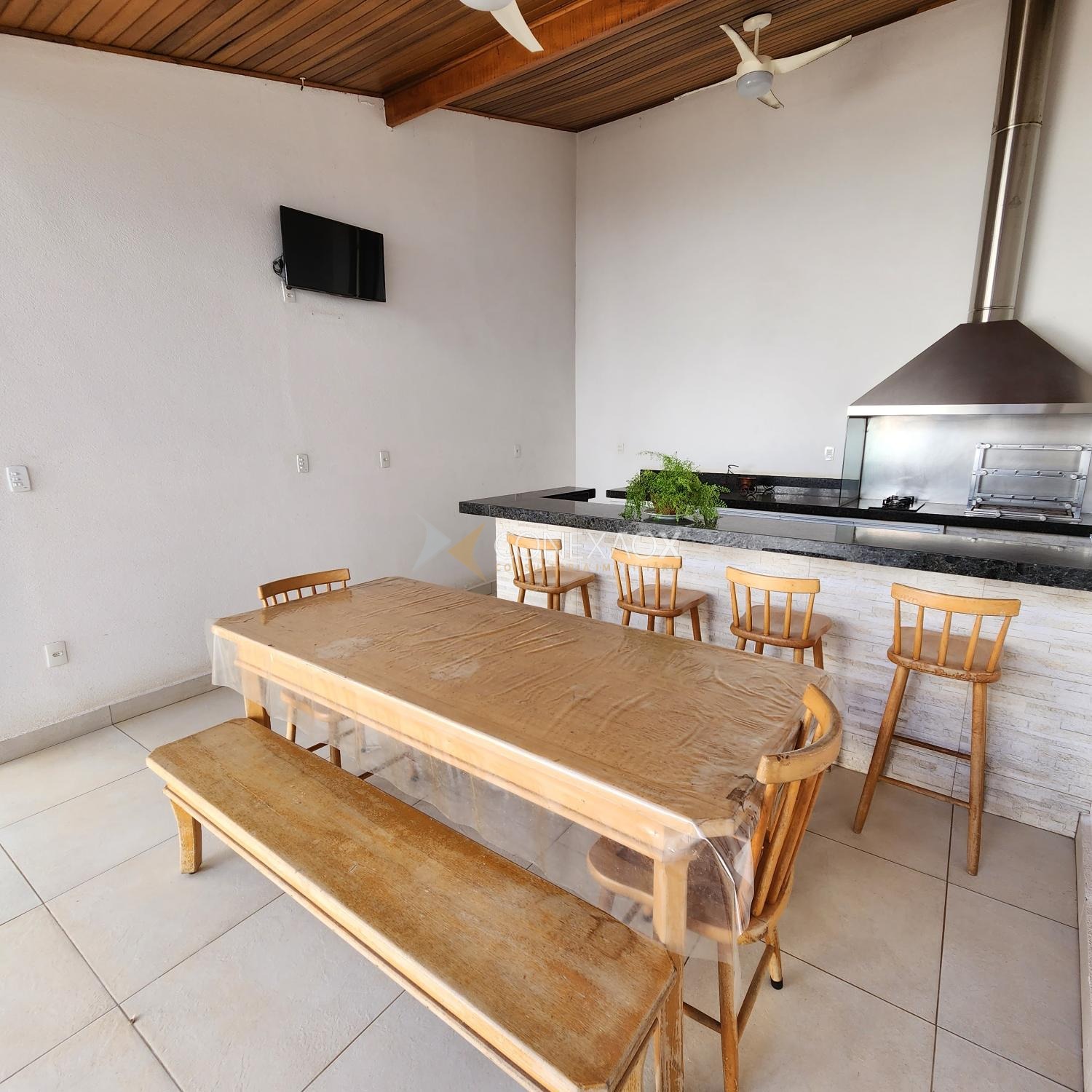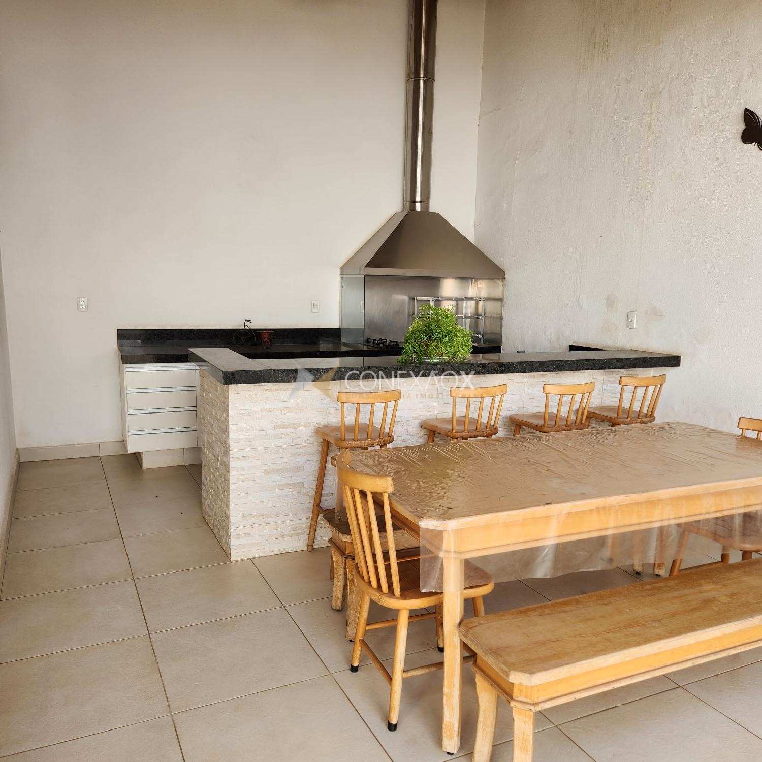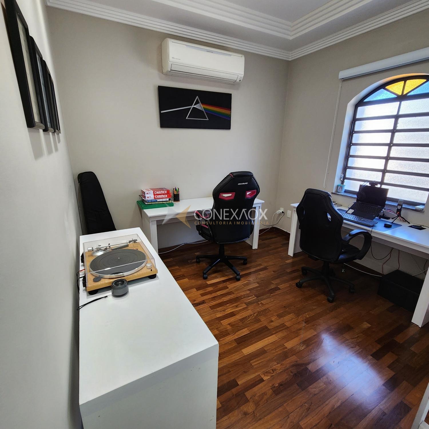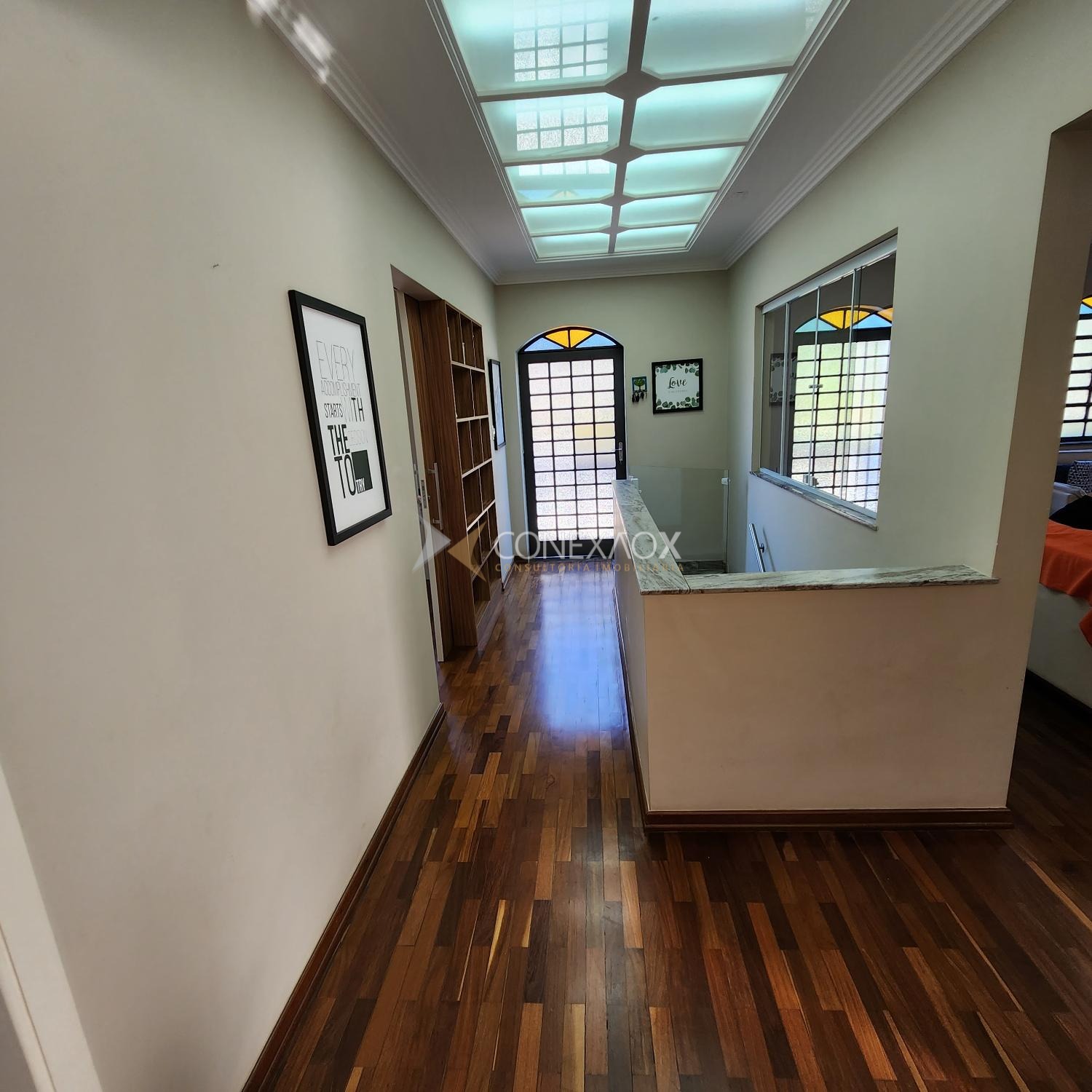 contendo: 3 quartos(2 suítes), 2 escritórios, sala de estar, sala de jantar, copa, cozinha, garagem pra 5 carros, 5 banheiros, pátio, quintal, varanda e área gourmet.
