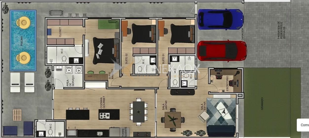 Casa nova,pronta paramorar, a venda em Paulínia, 3 suítes com armários, sala 02 ambientes com pé direito duplo, cozinha planejada, área gourmet com churrasqueira, área de serviço, quintal com pisicina e banheiro de apoio, 04 vagas de garagens. Infraestrutura para ar condicionado em todos os ambientes, sistema de aquecimento solar, metais deca, móveis nos quartos, banheiros, cozinha e lavanderia, persianas automatizadas. Condomínio com portaria 24 hrs, academia ao ar livre, quadra poliesportiva, quadra de tênis, quadra de beach tennis, quadra de futebol society, piscina, playground, salão de festas, área de convívio, espaço pet, segurança 24h, cabeamento elétrico subterrâneo.