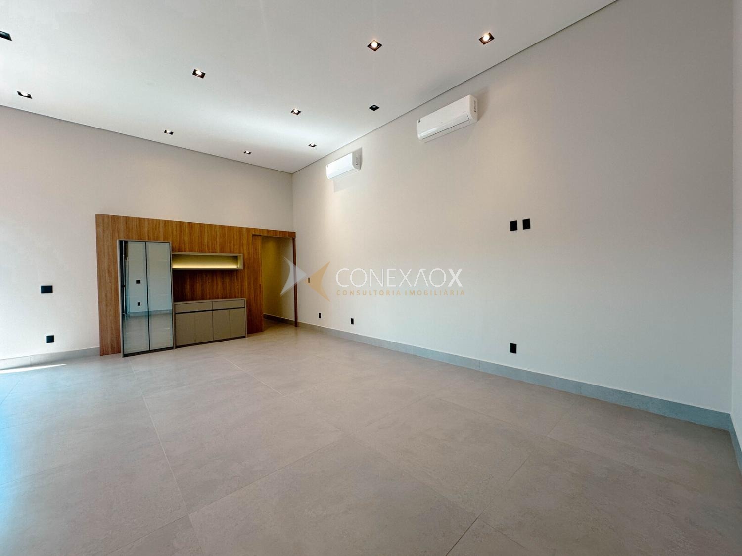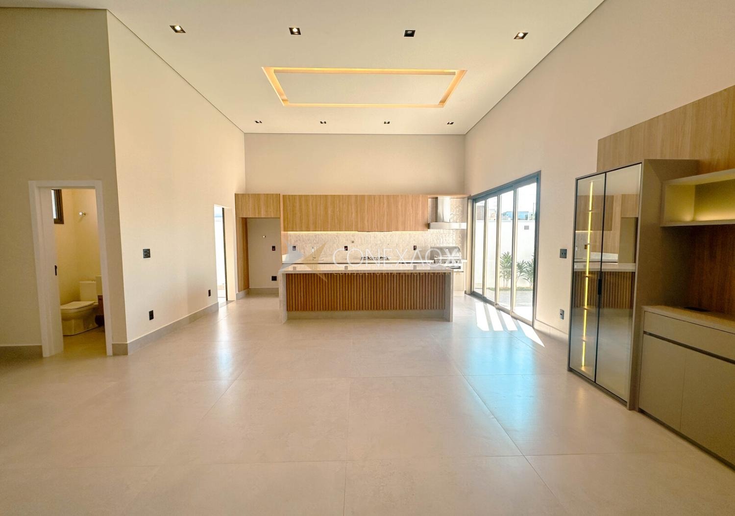 Sala de estar/TV com pé-direito duplo e integração total com os ambientes