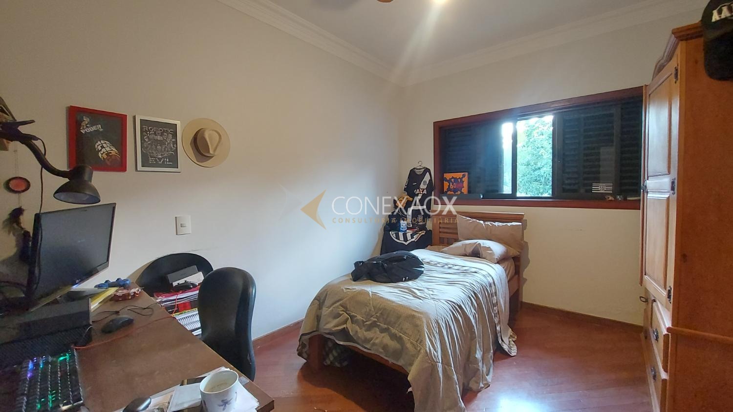 Casa a venda em condomínio em Campinas. Terreno com 1432 m², sala 02 ambientes com lareira, escritório, lavabo, cozinha, despensa, área de serviço, banheiro de empregada, churrasqueira, banheiro de apoio, piscina, amplo quintal gramado com árvores frutíferas. Piso superior com sala intima, 04 quartos sendo 02 suítes e 01 suíte americana, suíte do casal com closet e varanda com linda vista para a serra. Terceiro pavimento com amplo sótão podendo ser utilizado para escritório, ateliê, 04 vagas de garagens.