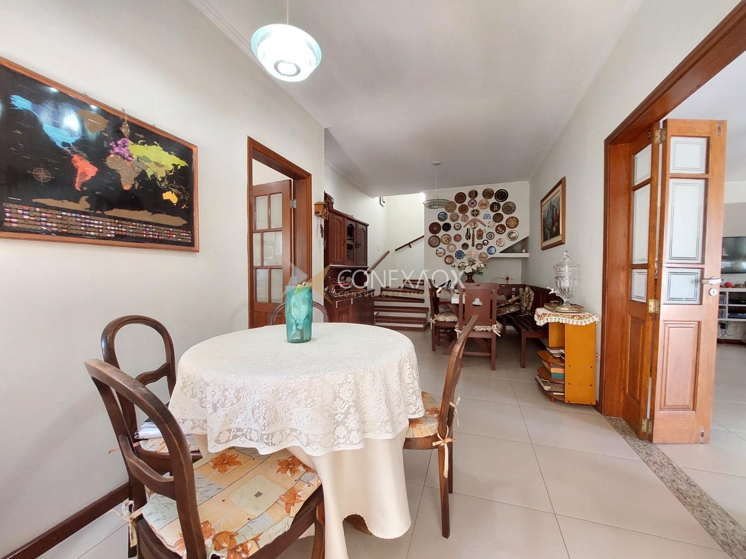 248,86 área construída e 408,91 m² área terreno. Ampla sala de estar com lareira, lavabo, sala de jantar, 03 quartos, sendo todos suítes com varanda e 02 com closet, escritório / sala TV, cozinha com armários planejados, despensa, área de serviço, quarto externo com banheiro, quintal, churrasqueira e piscina, 04 vagas de garagem.