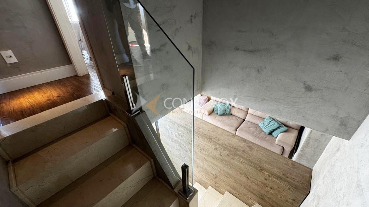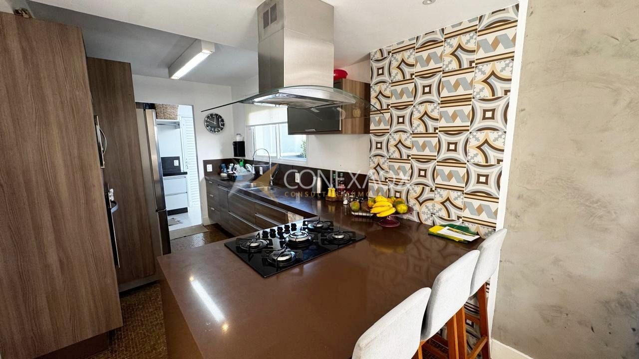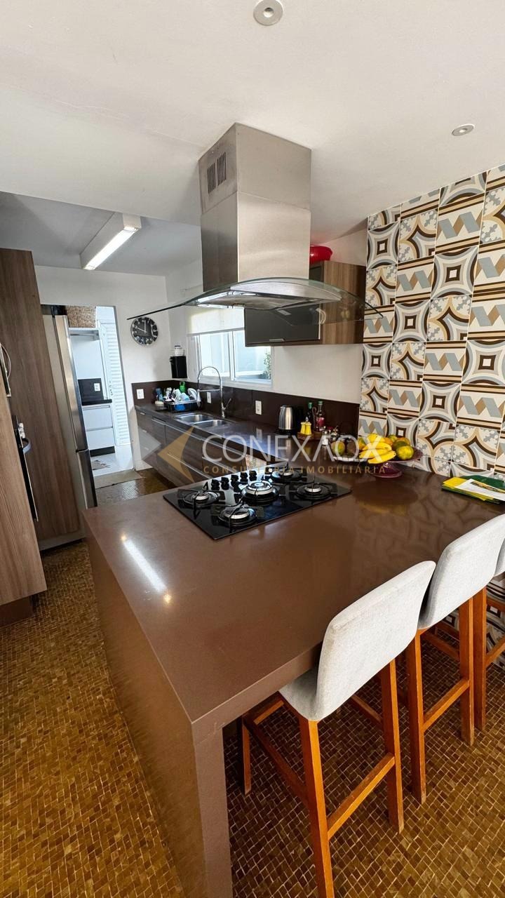 - São 3 suítes com planejados com piso vinílico, sala 3 ambientes, lavabo, porcelanato na sala e banheiros, cozinha americana e balcão integrado com a sala e cooktop, coifa, forno, piso pastilhado, lavanderia com armários e banheiro de apoio;