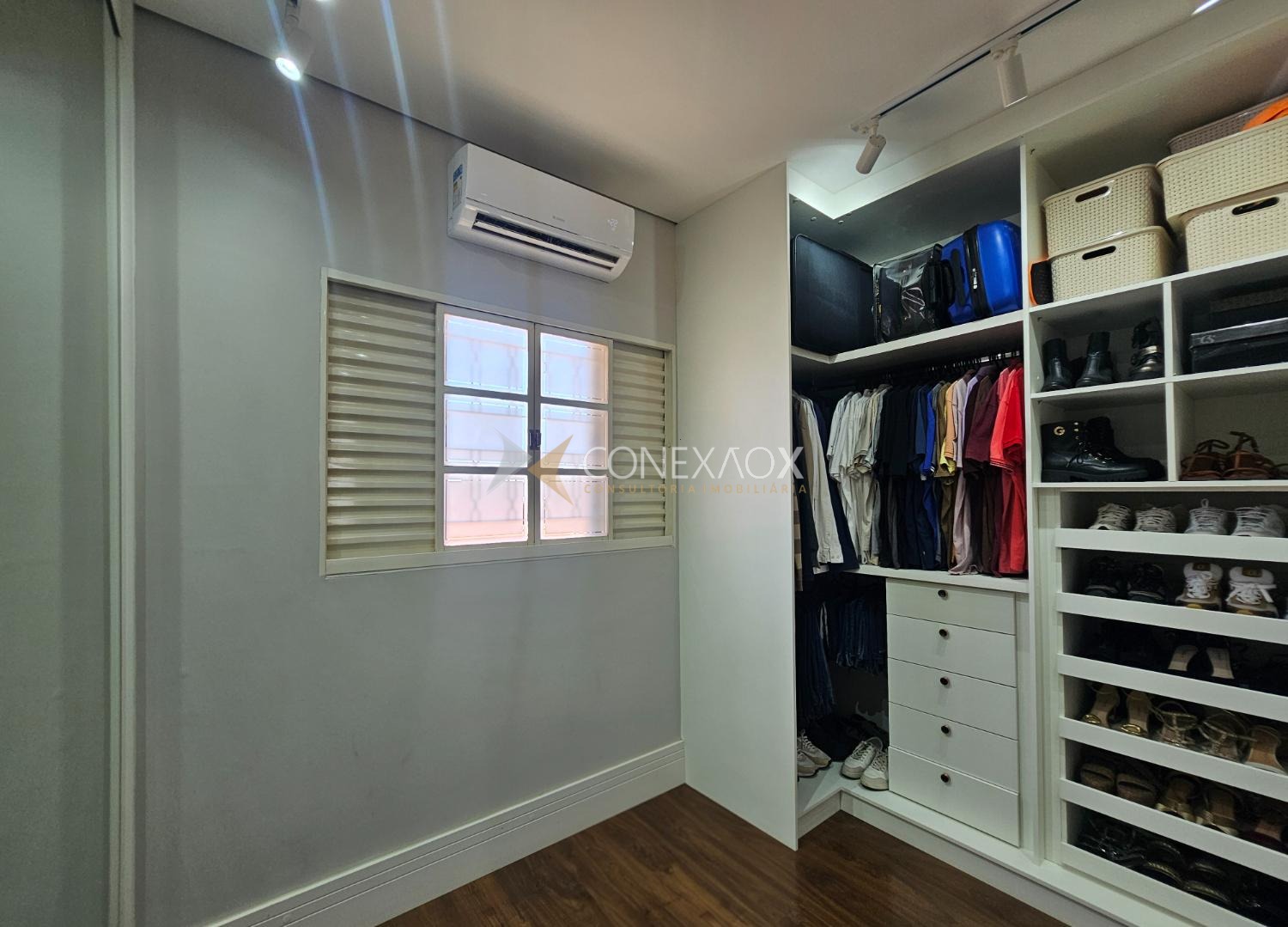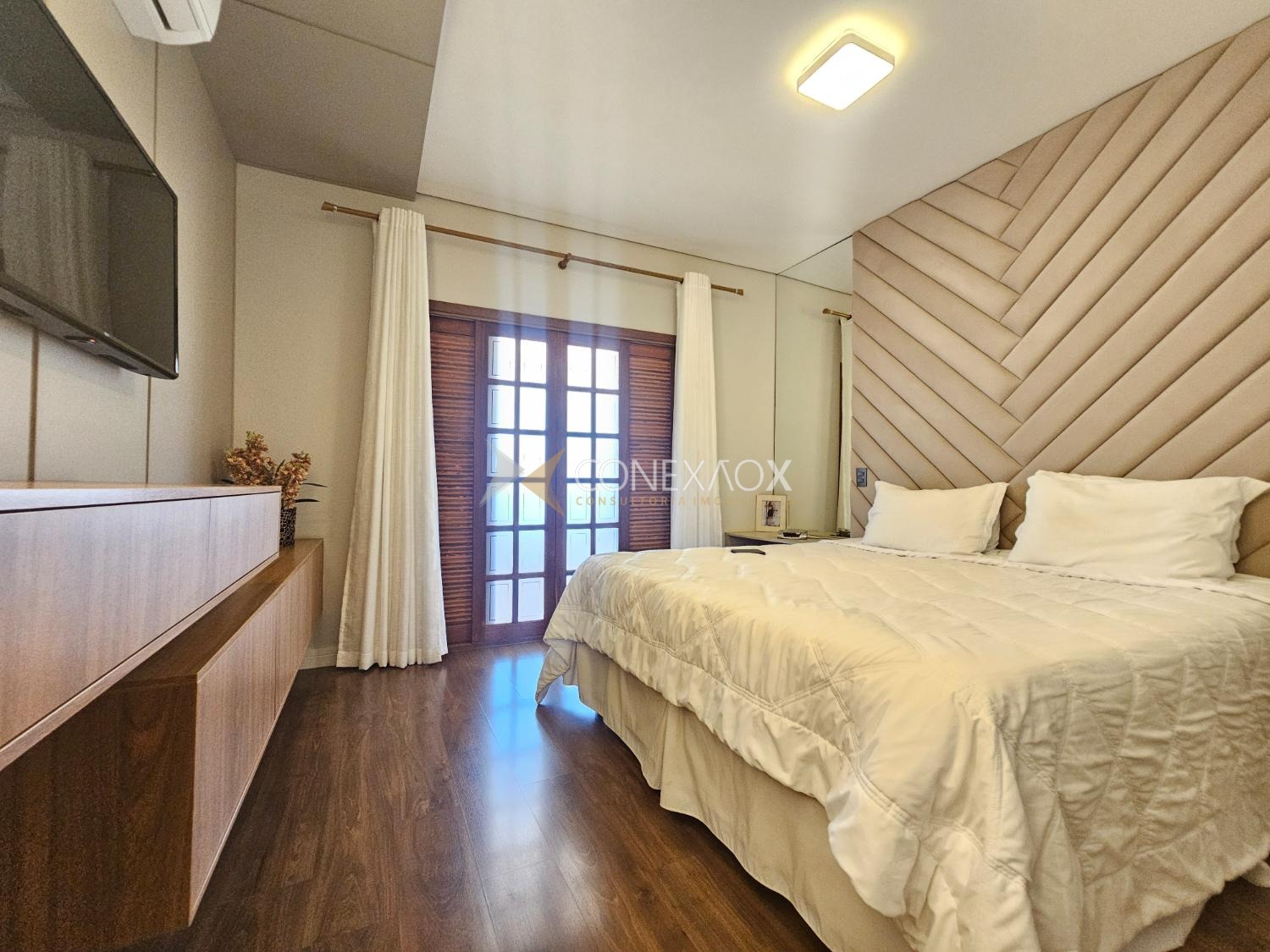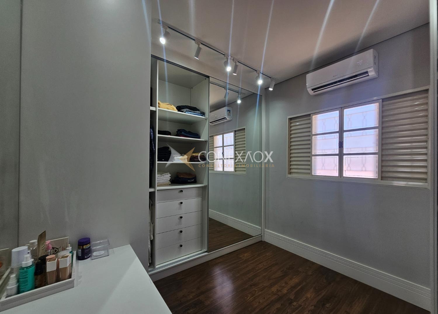 embutida no teto, sanca fechada com Led e ar-condicionado.