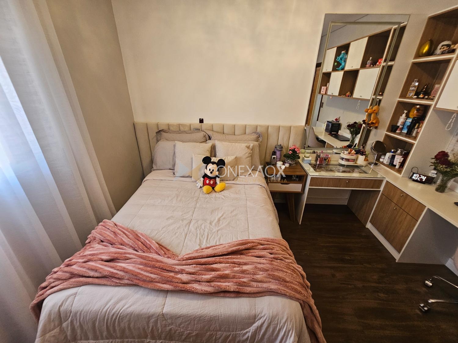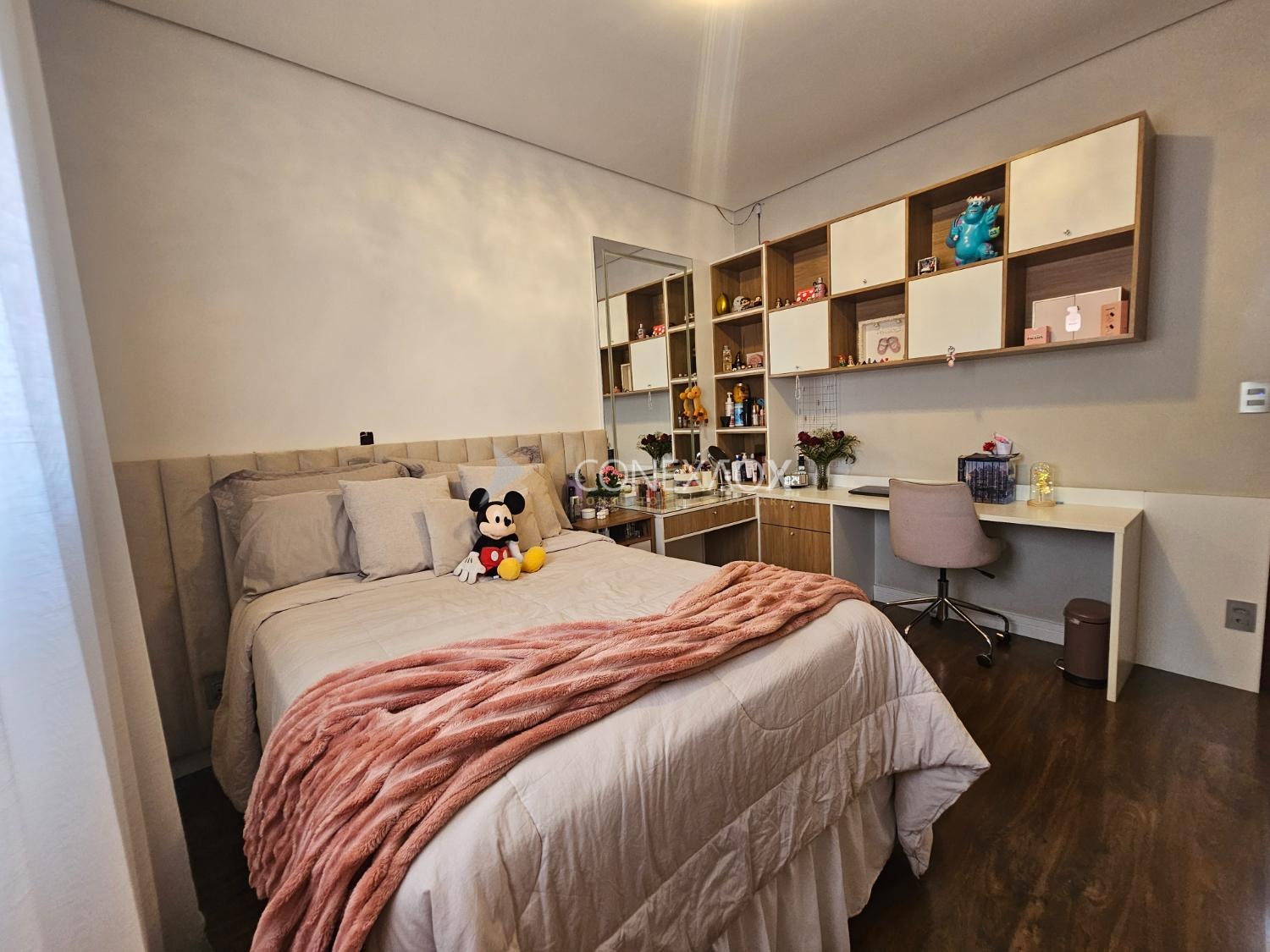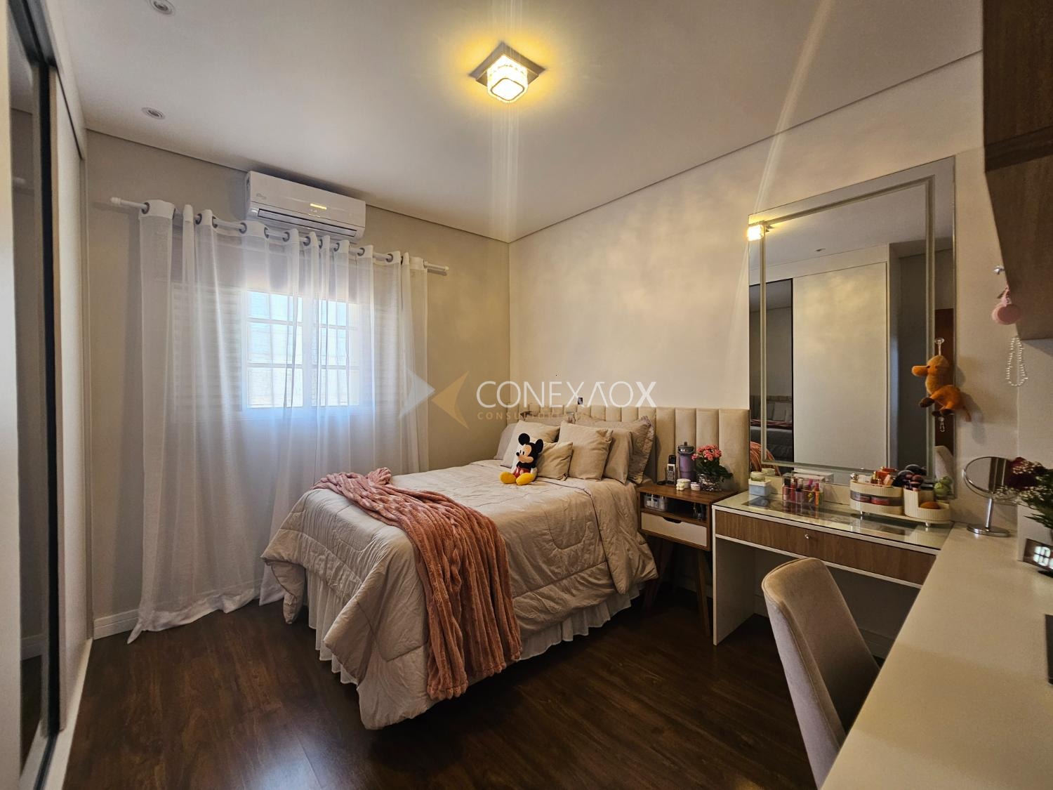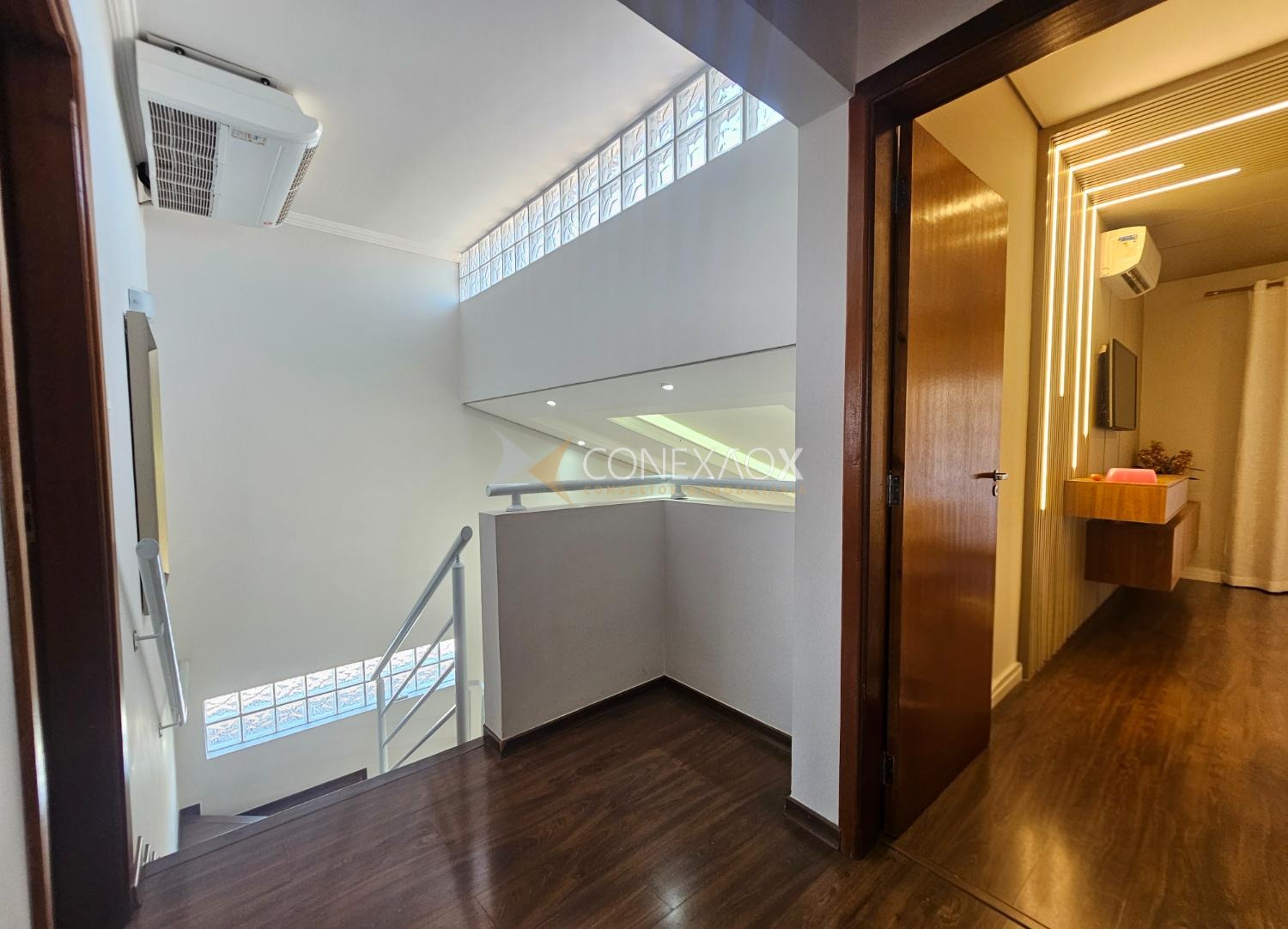 embutida no teto, sanca fechada com Led e ar-condicionado.