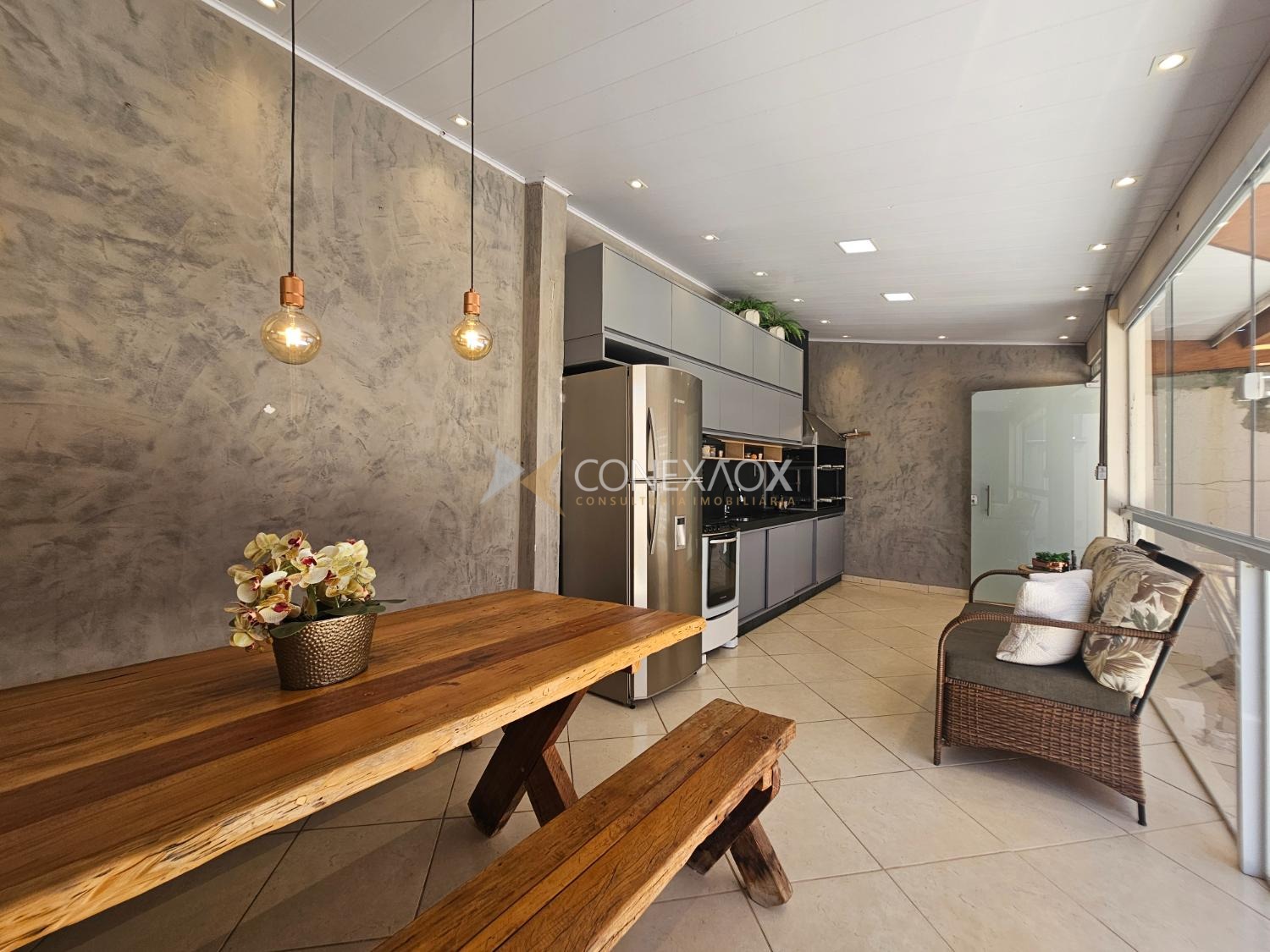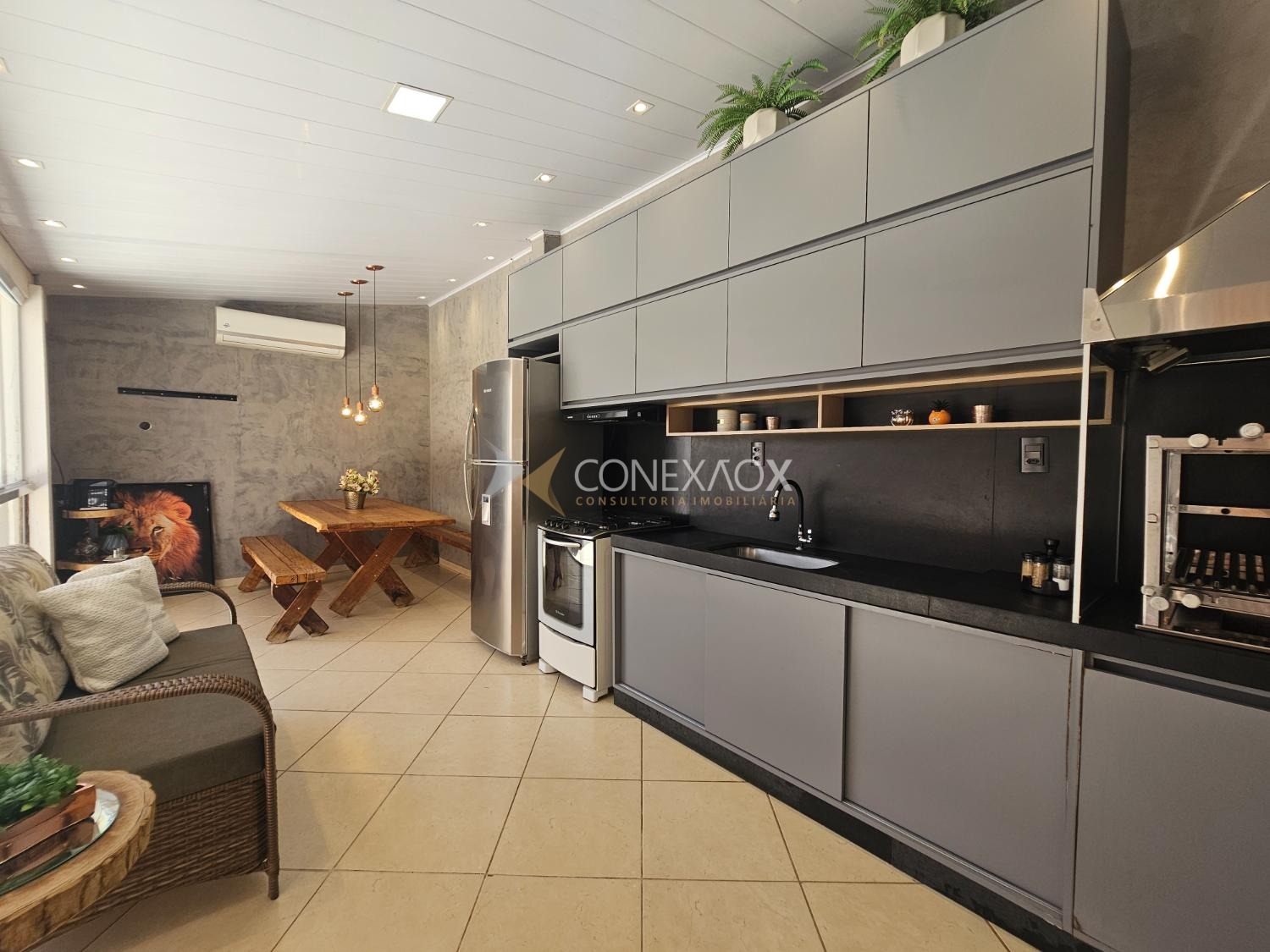 gourmet ampla, com churrasqueira e cozinha com armários planejados — perfeita para reunir amigos e familiares com