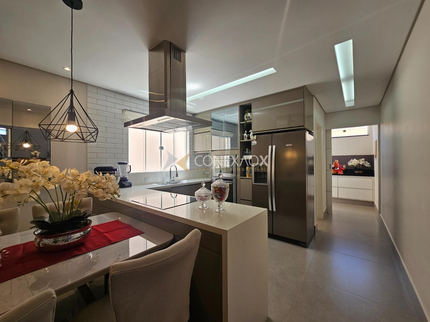 Na área social, destaca-se a sala de estar ampla, com sanca aberta, iluminação em Led e ar-condicionado, perfeita