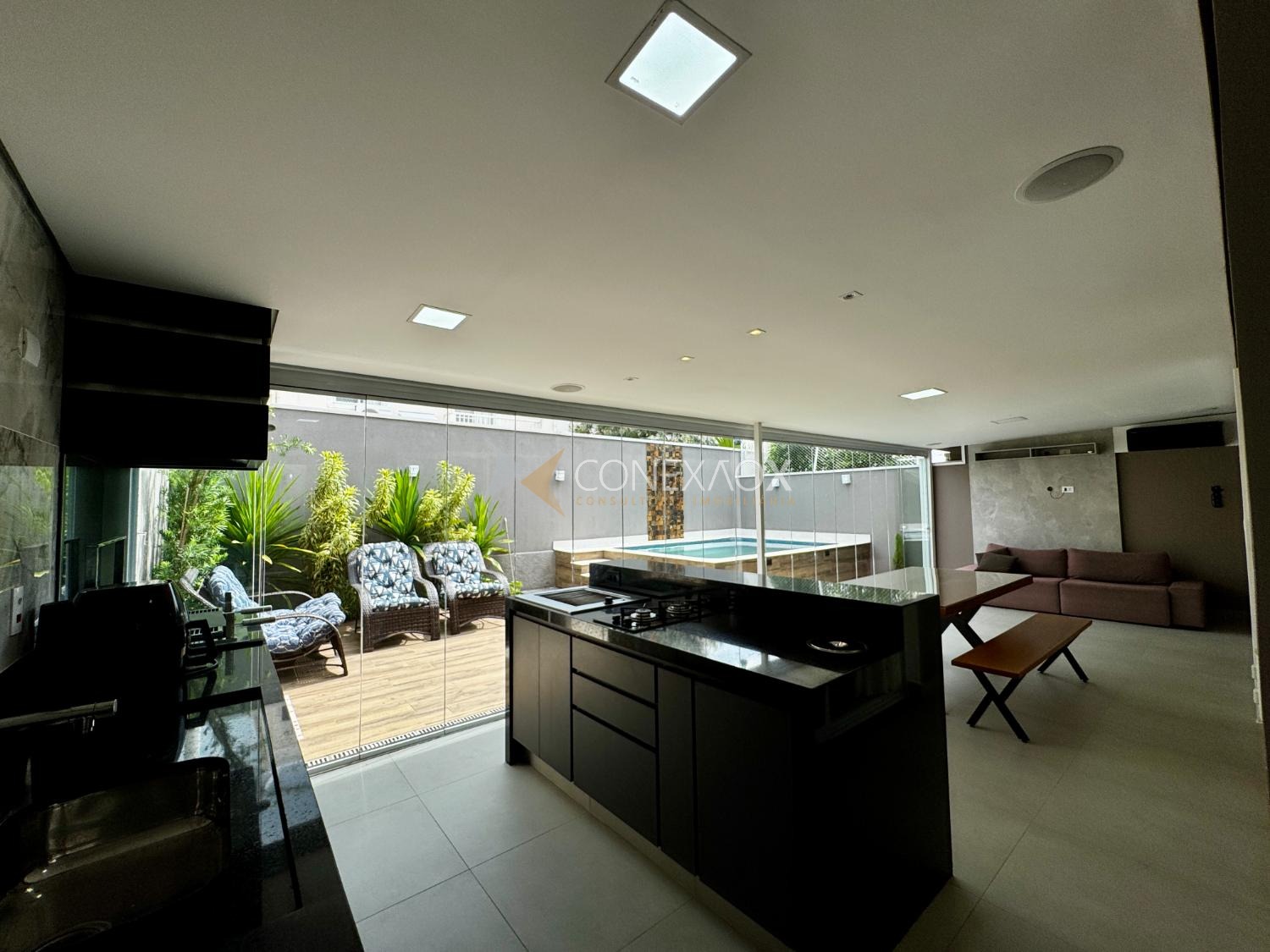 Na área externa, destaque para o espaço gourmet integrado, com churrasqueira a gás e carvão, perfeito para receber amigos e familiares, além de um quintal com piscina aquecida.