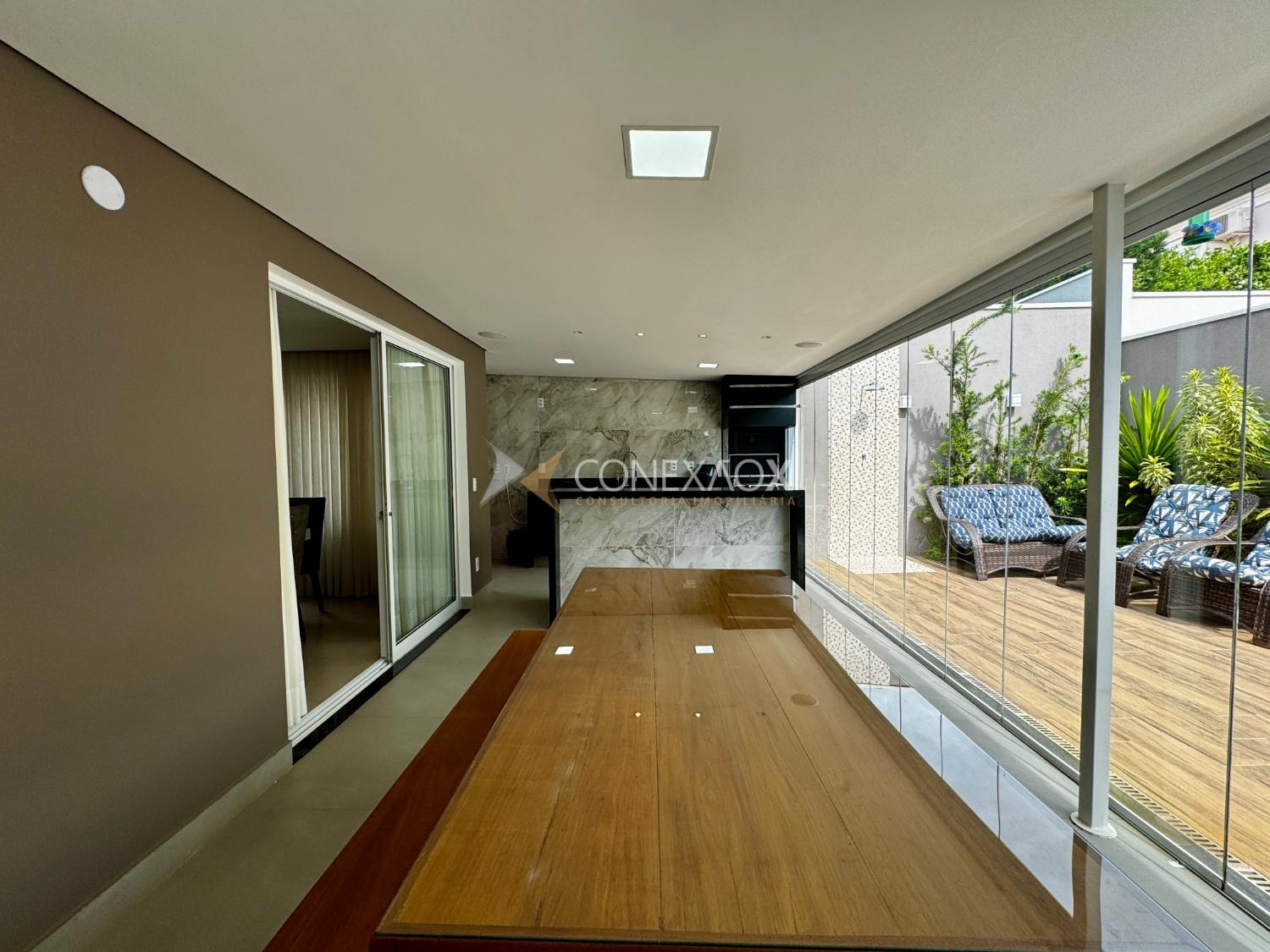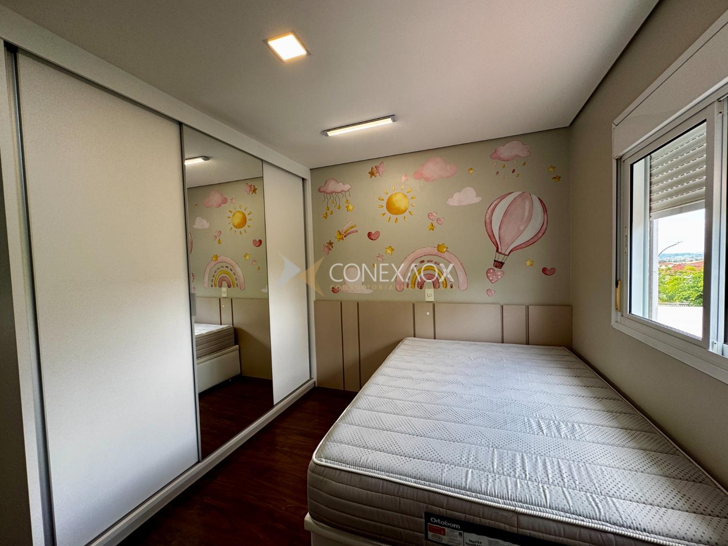 O imóvel conta com 4 dormitórios, sendo 2 suítes, todos com armários planejados e ar-condicionado, oferecendo conforto e praticidade para toda a família.