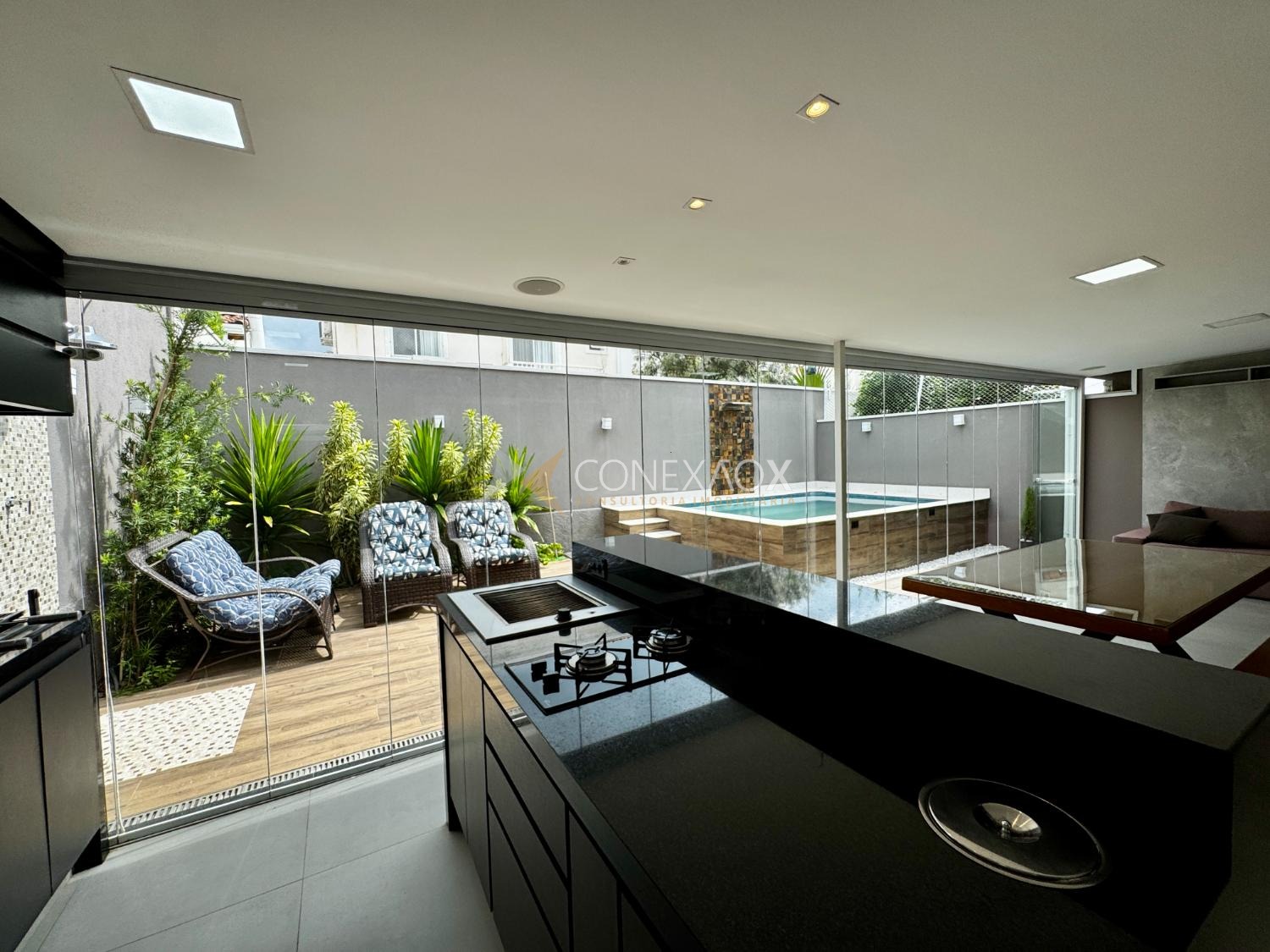 A casa possui ainda aquecimento a gás e energia fotovoltaica, unindo economia e sustentabilidade.