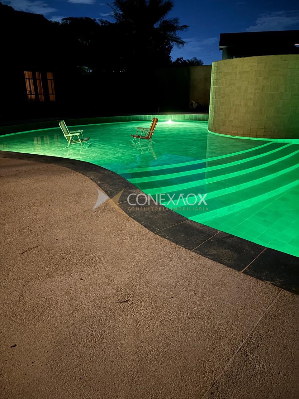 Piscina com prainha, cascata e iluminação