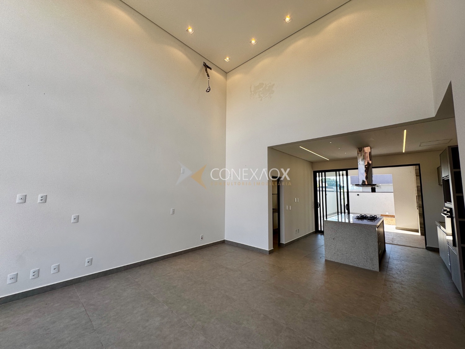 A casa que você imagina é um perfeito exemplo de design moderno, combinando estética contemporânea com funcionalidade. A sala ampla, com 5 metros de pé direito, proporciona uma sensação de espaço e luminosidade, ideal para receber amigos e familiares. Grandes janelas garantem a entrada de luz natural, enquanto um layout aberto conecta a sala a outras áreas da casa, como a cozinha e a sala de jantar.