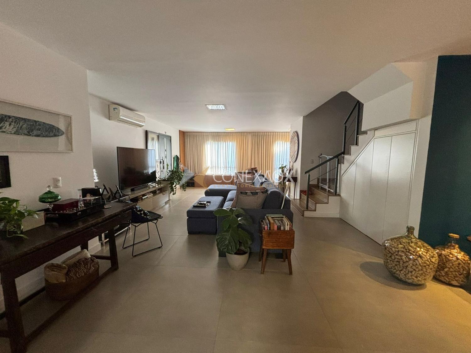 Linda casa com living para dois ambientes, climatizada, lavabo, 3 suítes ricas em armários sendo 1 máster, closet, sala tv ou escritório, cozinha planejada, espaço gourmet com cobertura + quintal, 2 garagens ;