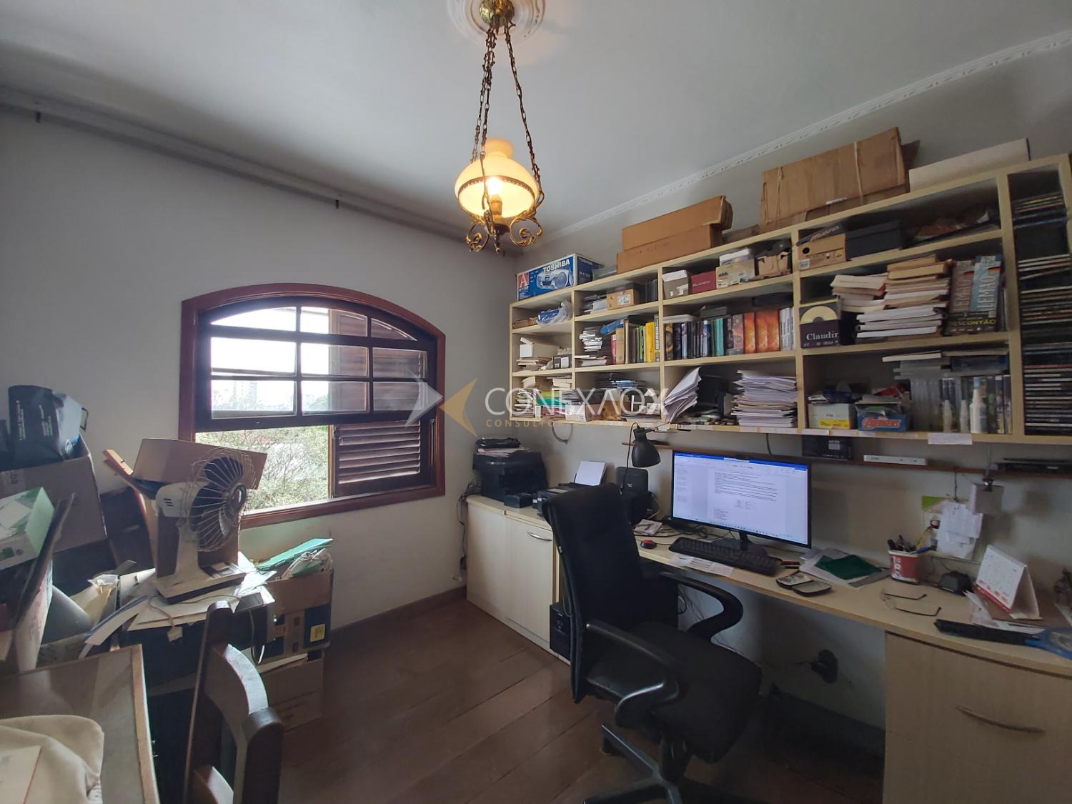 O sobrado possui planta ampla e bem distribuída. No piso térreo conta com sala espaçosa, sala de jantar, um dormitório com banheiro que pode ser transformado em suíte, além de banheiro social, cozinha, despensa e dormitório de serviço com banheiro. O quintal é amplo e agradável, com árvores frutíferas, proporcionando um ambiente versátil tanto para moradia quanto para adaptação comercial.