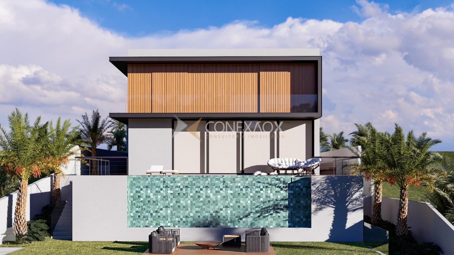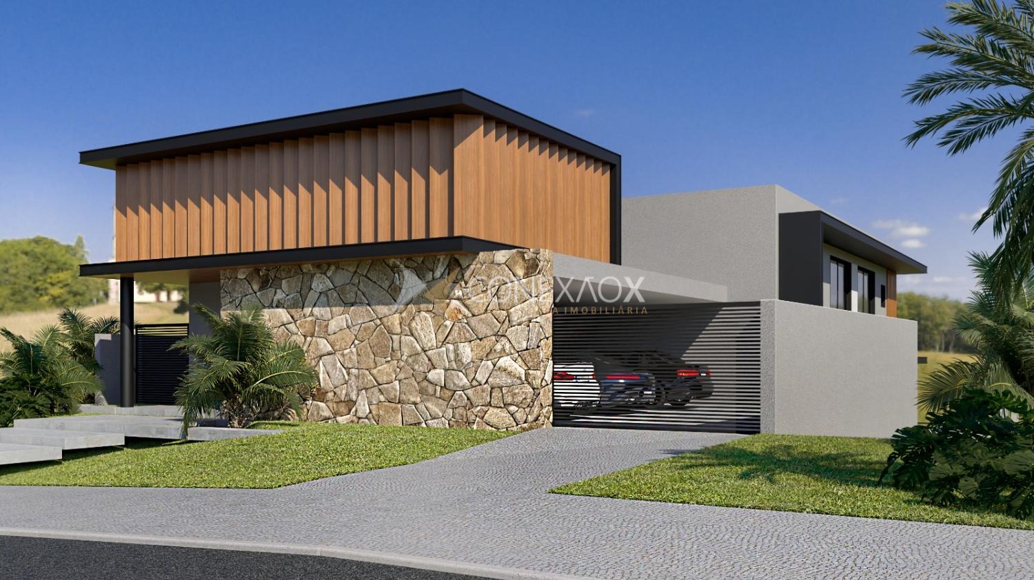 Garagem coberta para 4 carros, duas entradas laterais de serviço, infraestrutura para ar-condicionado, energia fotovoltaica e aquecimento solar. Imóvel será entregue com jardinagem e iluminação externa prontas.