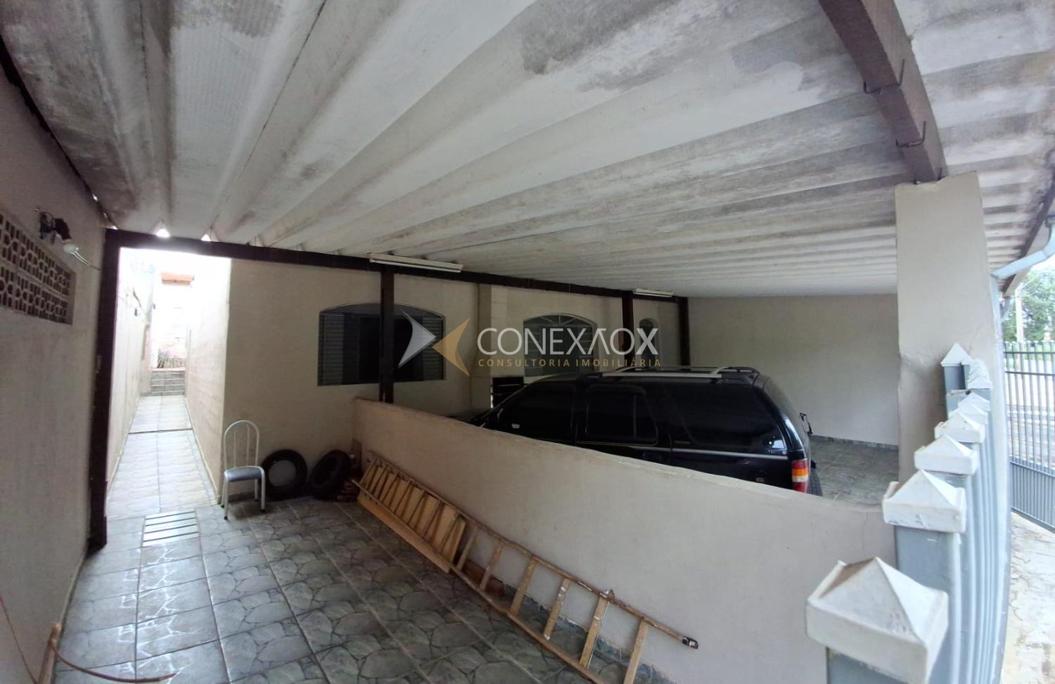 Casa da frente com 2 dormitórios, 1 banheiro, sala e cozinha. Garagem coberta para 2 carros. Varanda no fundo com banheiro.