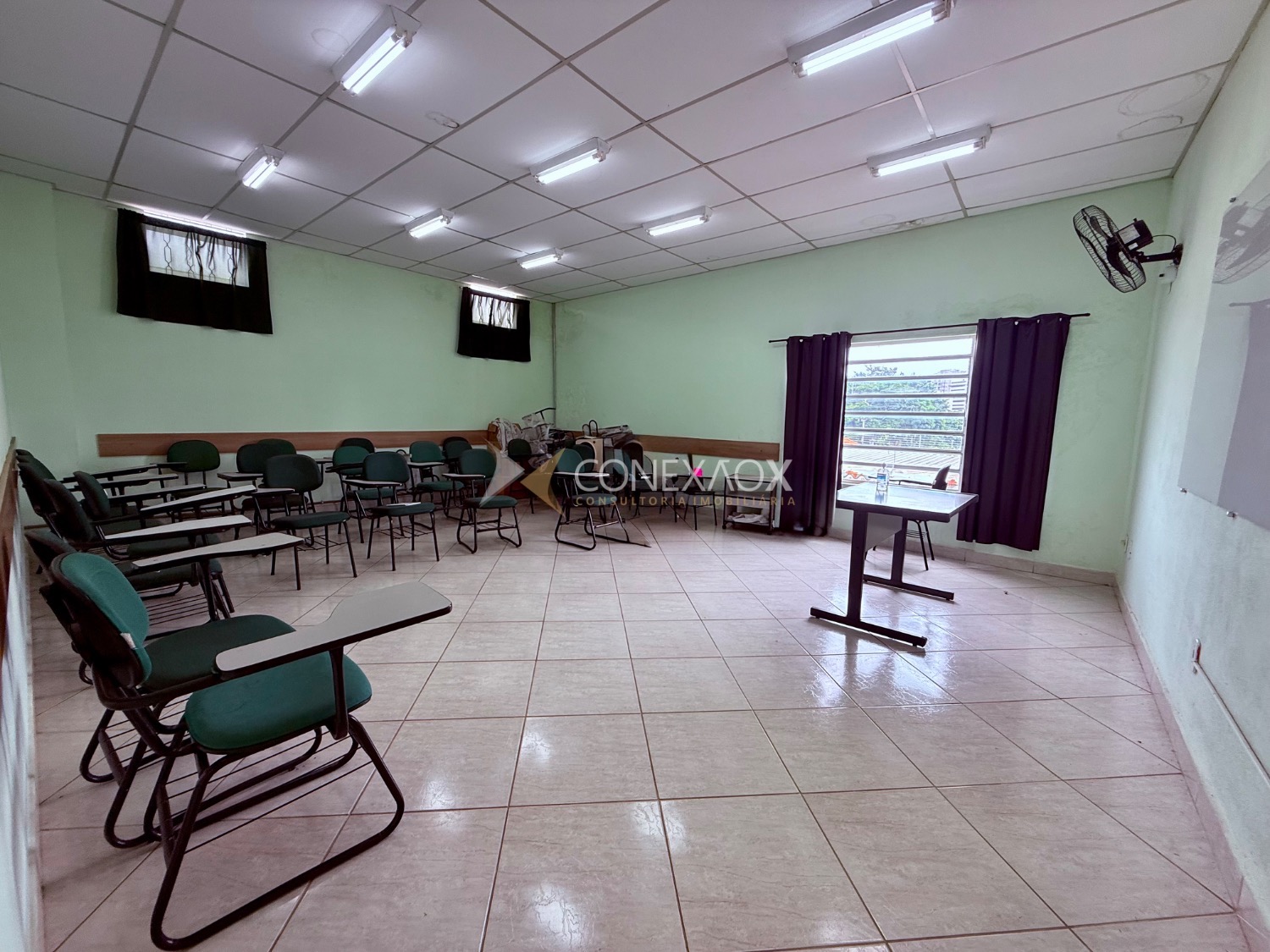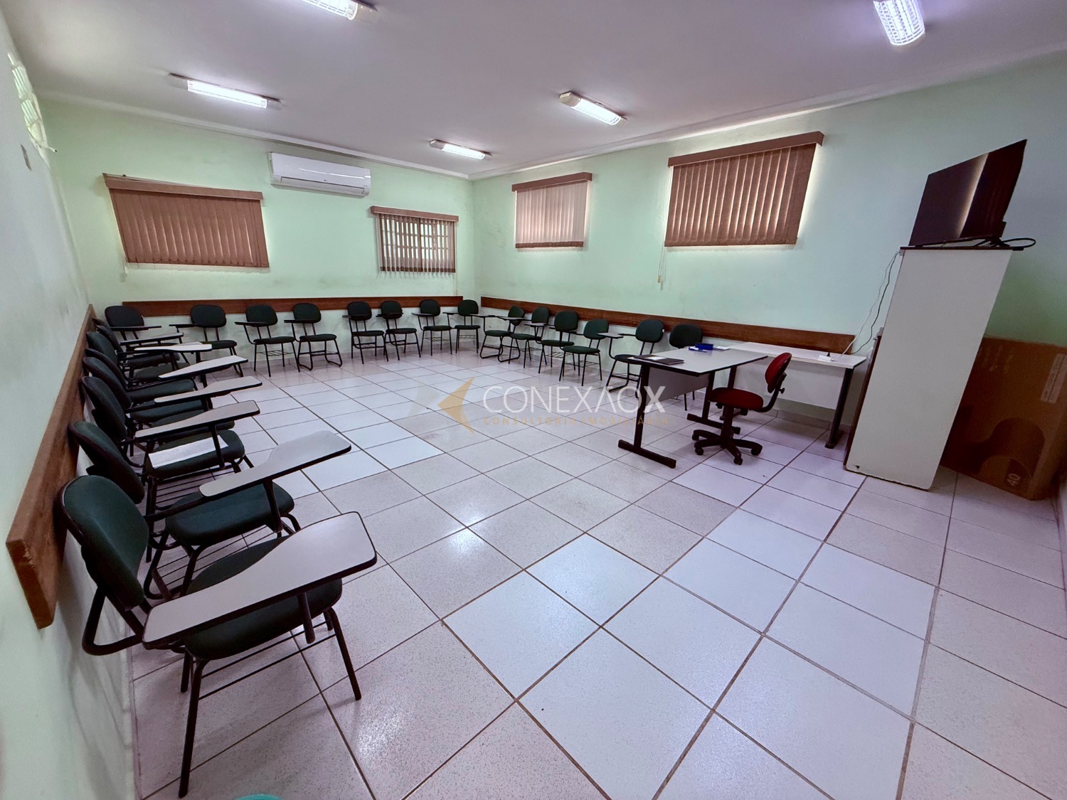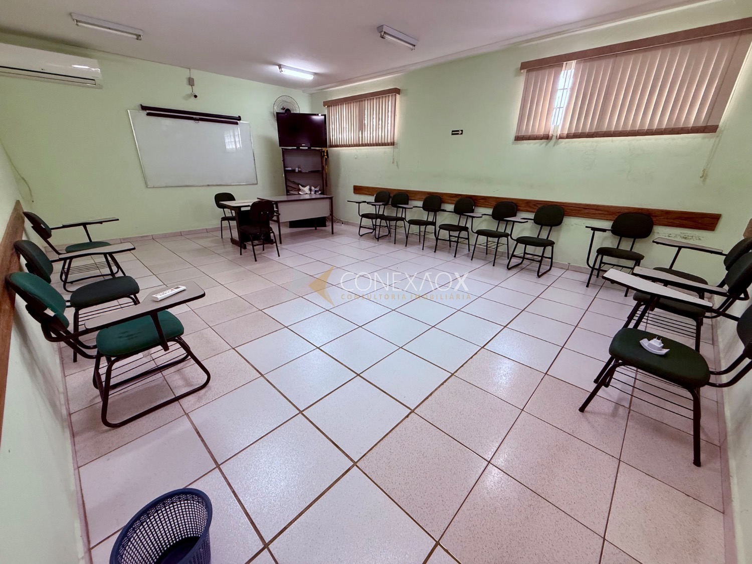 Possui recepção de 12 metros, cozinha, 2 salas grandes climatizadas com 36 metros no térreo, 5 banheiros sendo 1 para deficientes, no andar superior temos mais 2 salas grandes também com 36 metros separadas por drywall com possibilidade de alteração da configuração, 2 banheiros, mais 3 salas menores com 12 metros, garagem para 2 carros, com possibilidade de estacionamento na rua em frente ao local.