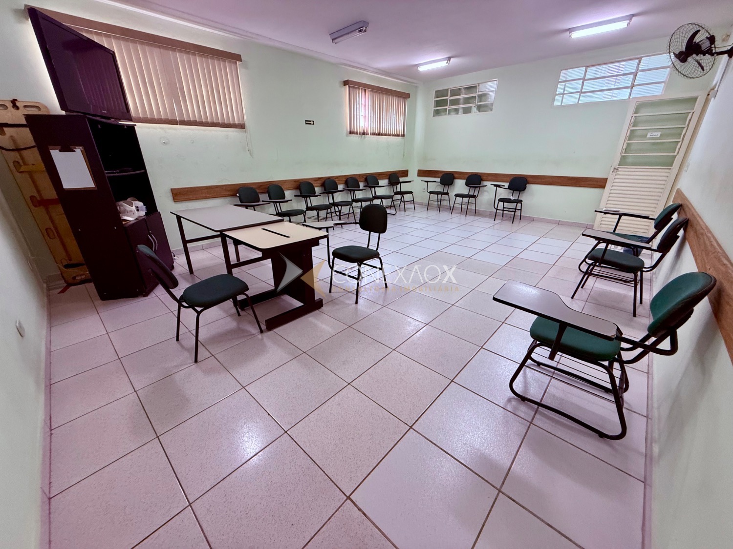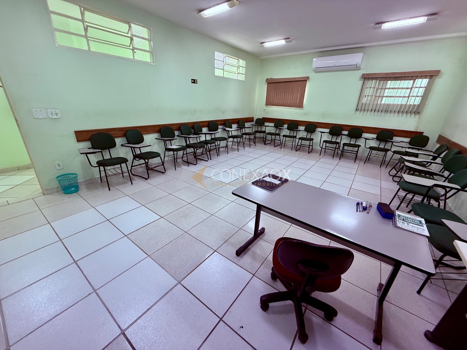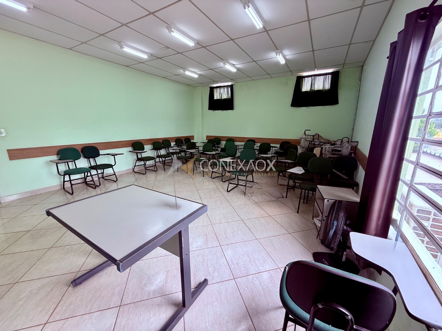 Possui recepção de 12 metros, cozinha, 2 salas grandes climatizadas com 36 metros no térreo, 5 banheiros sendo 1 para deficientes, no andar superior temos mais 2 salas grandes também com 36 metros separadas por drywall com possibilidade de alteração da configuração, 2 banheiros, mais 3 salas menores com 12 metros, garagem para 2 carros, com possibilidade de estacionamento na rua em frente ao local.