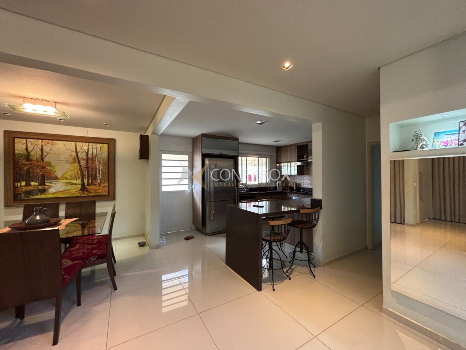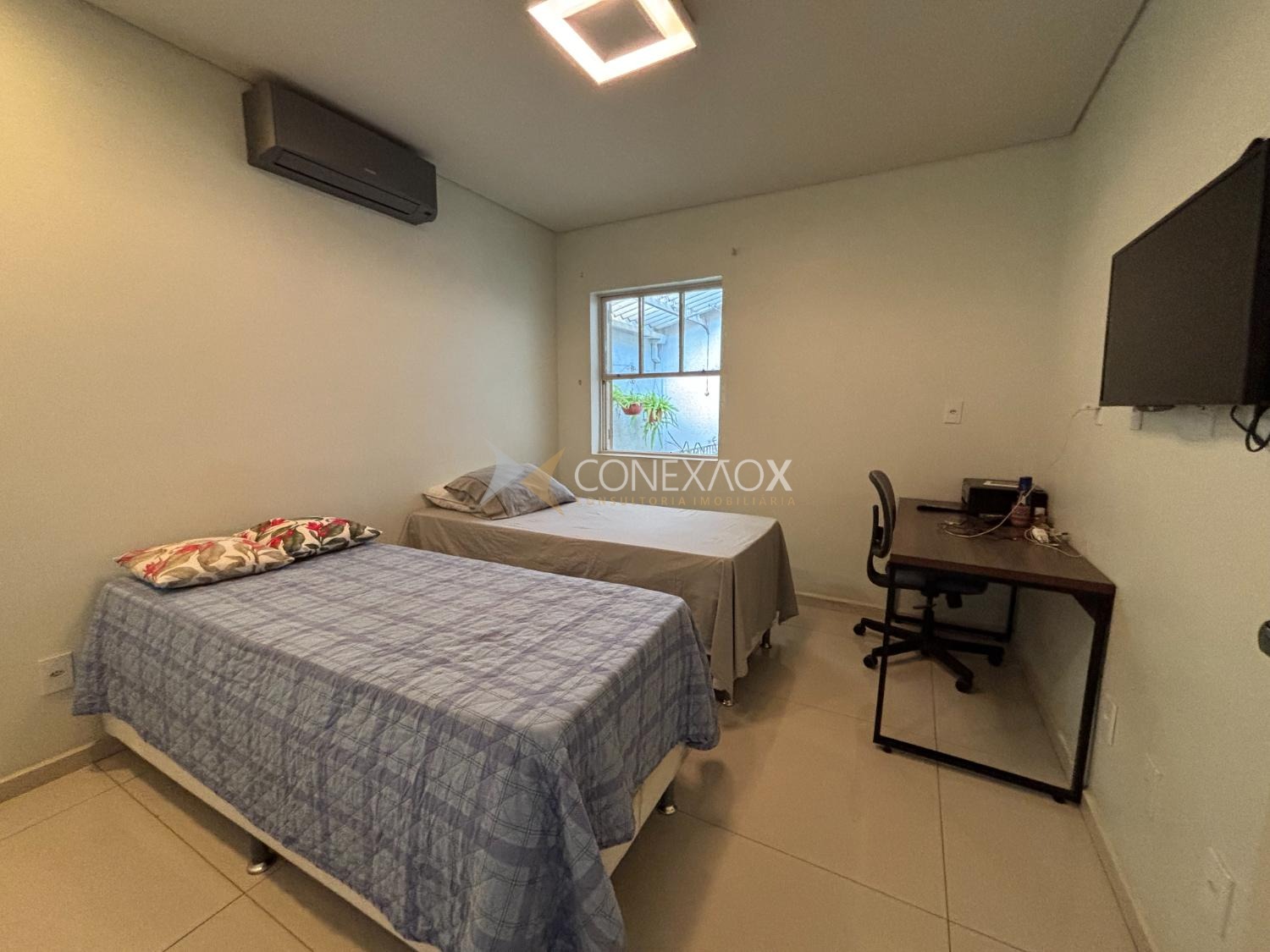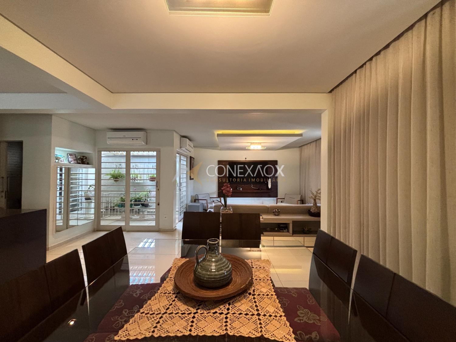 Casa tipo sobrado com acesso por escada a partir da rua, porém com toda a área principal distribuída em um único pavimento. Atualizada, ambientes climatizados, sala de estar e sala de jantar integrados com a cozinha, jardim de inverno com cobertura Zetaflex, janelas amplas, piso em porcelanato, projeto de iluminação, lavabo, 3 quartos amplos em ricos em armários sendo 1 suíte com 2 pias, banheiro social, cozinha americana moderna e planejada, cooktop, forno e depurador, pela cozinha temos acesso lateral para o quintal com lavanderia e espaço gourmet com churrasqueira, escritório com banheiro. A garagem é coberta e possui espaço para 2 carros e conta ainda com quarto adicional com banheiro. Telhado, elétrica e hidráulica todos novos, construção sólida. Próximo do Shopping Iguatemi e Escola Tigrinhos. À 10 min do Cambuí.
