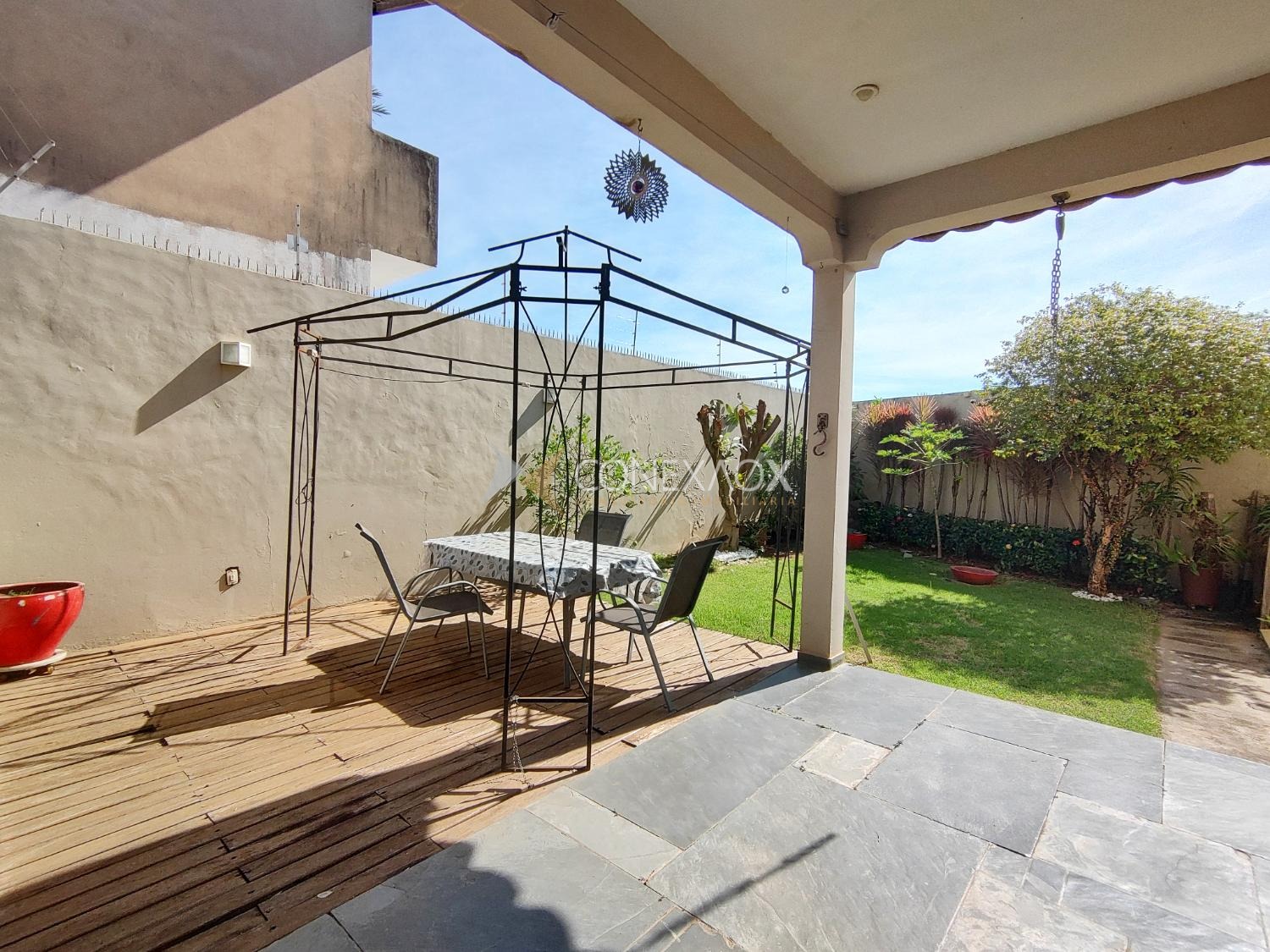 - Quintal com piso frio e grama, corredor nas duas laterais, garagem para 4 carros (2 cobertos), interfone e portão eletrônico.