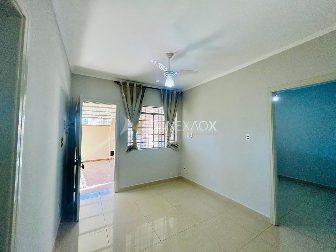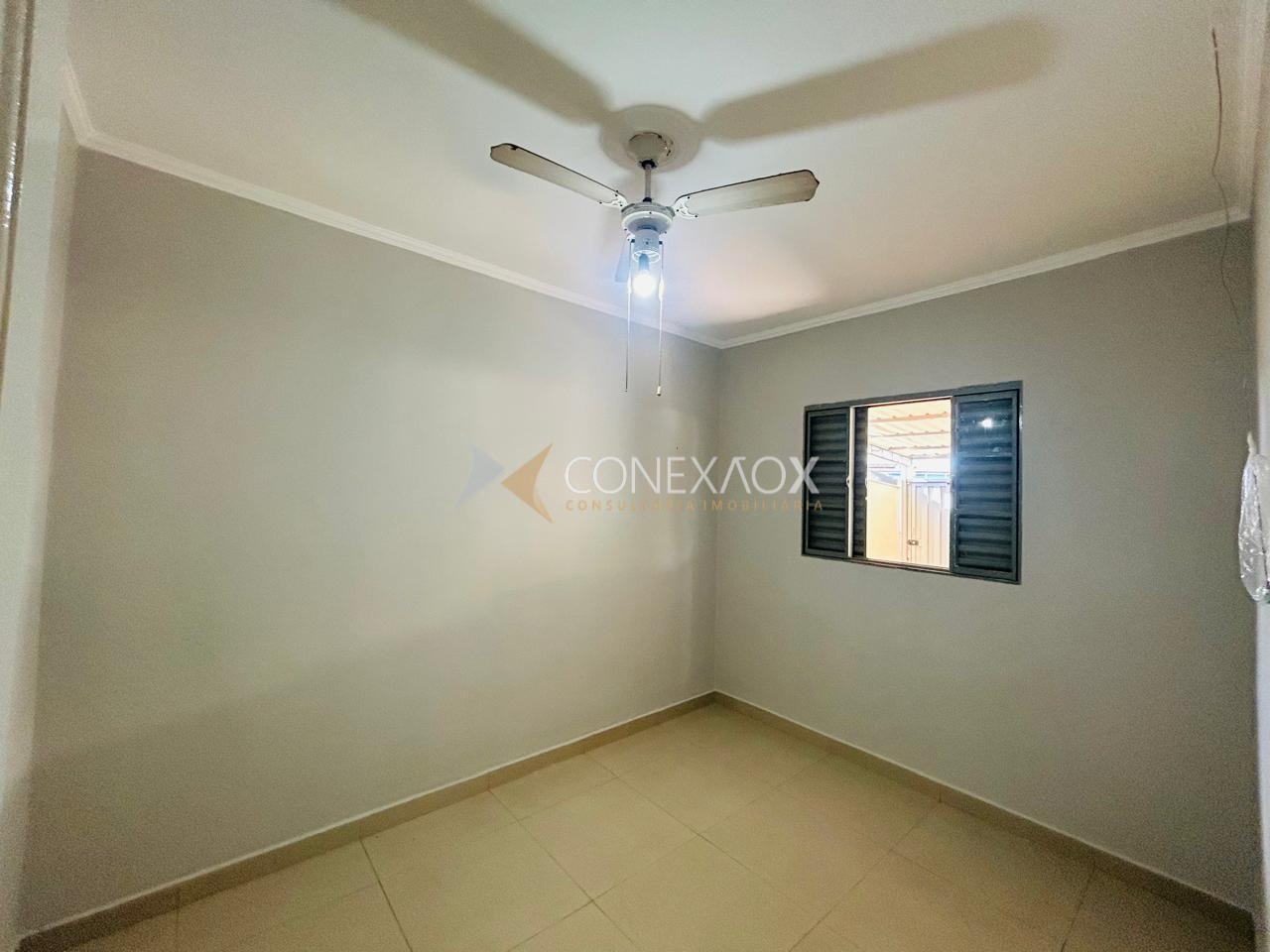 Casa da frente com 3 quartos, 1 sala e copa e cozinha, todos com ventilador de teto, 1 banheiro social, area de serviço.