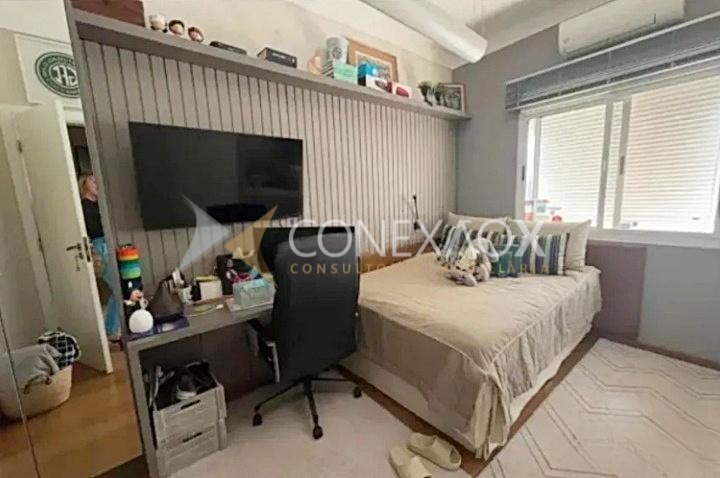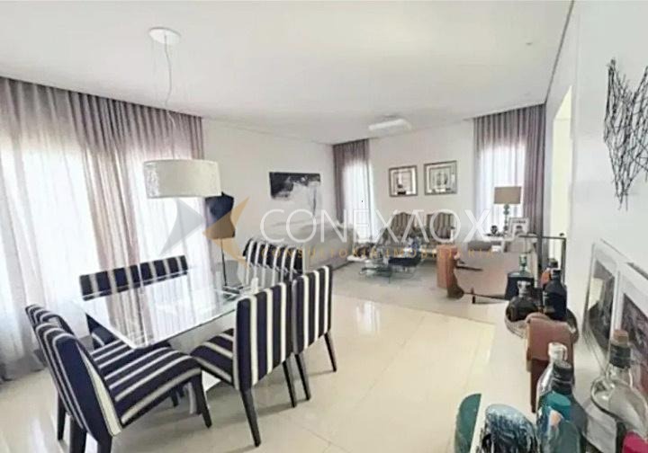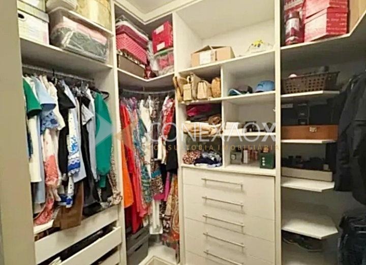 São 3 suítes (1 master com closet), com armários planejados e ar-condicionado, escritório, hall de entrada, salas de estar, TV e jantar integradas, lavabo e cozinha planejada com ilha e cooktop.