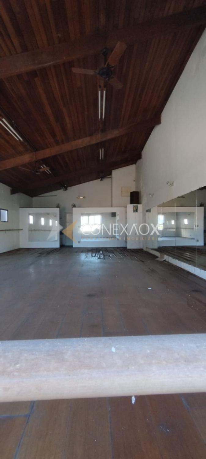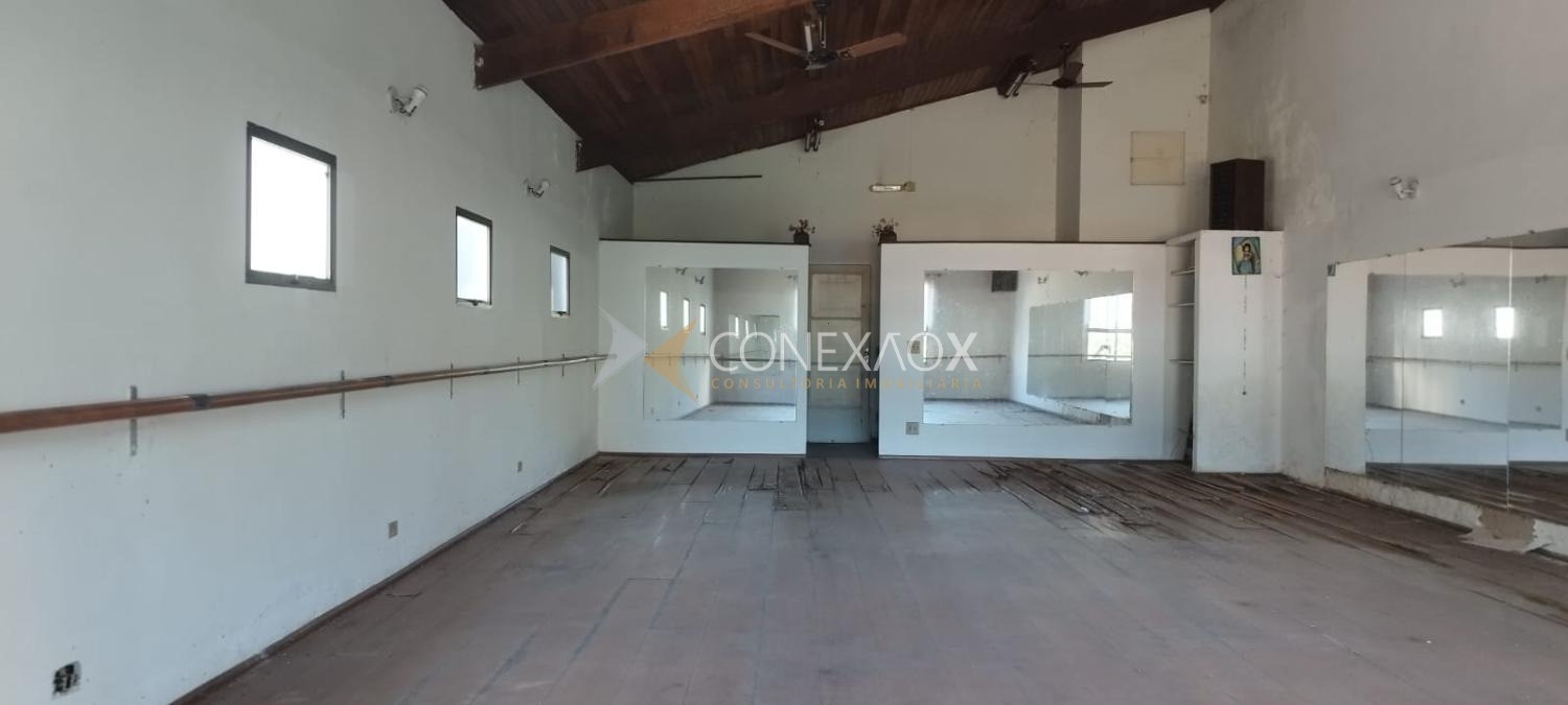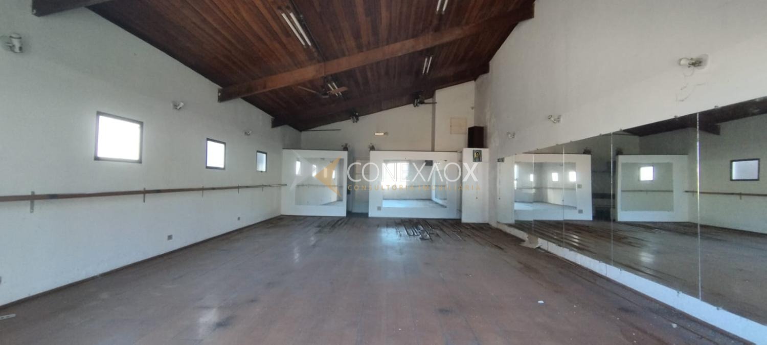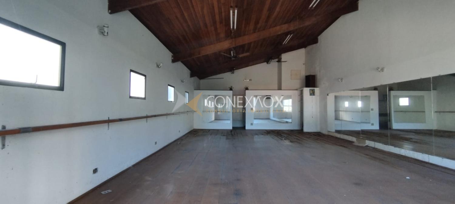Salao com piso de madeira com 105 m², mais terreno vago no fundo.