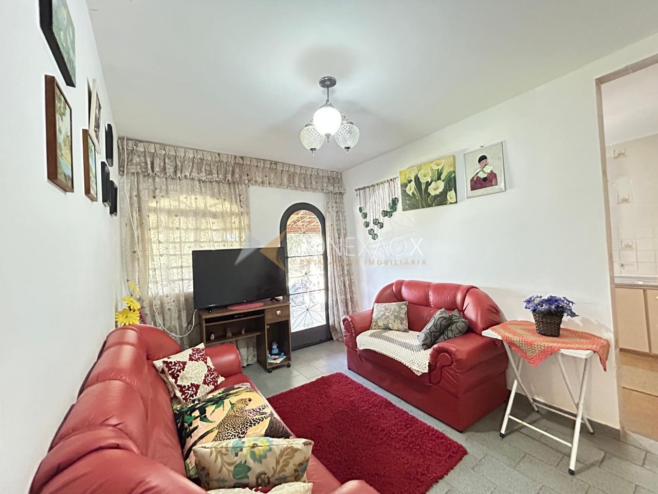 Casa principal com 2 quarto, 1 sala, 1 cozinha, 1 banheiro, varanda com churrasqueira