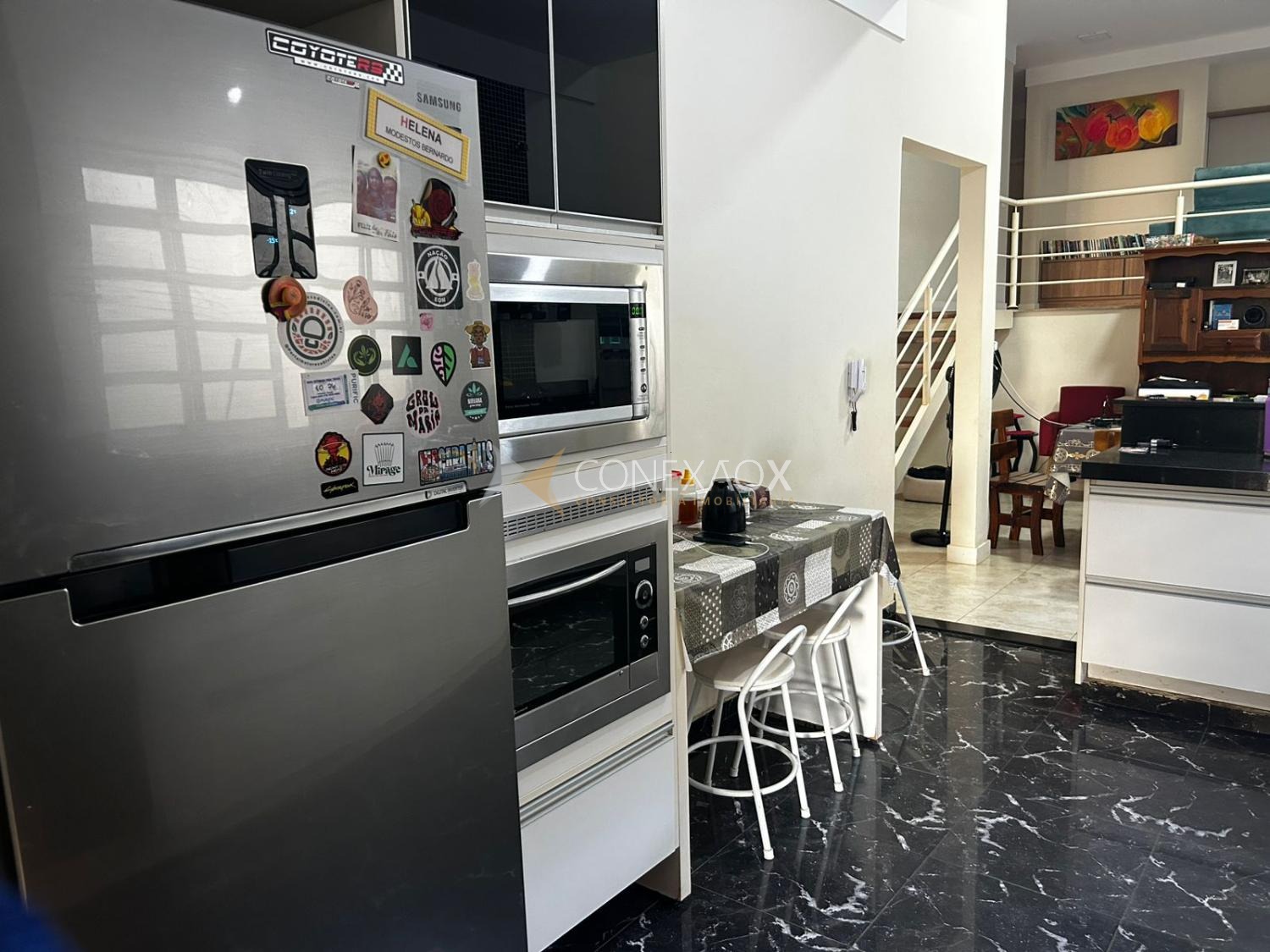 Cozinha planejada e equipada com armários, coifa, forno e micro-ondas embutidos